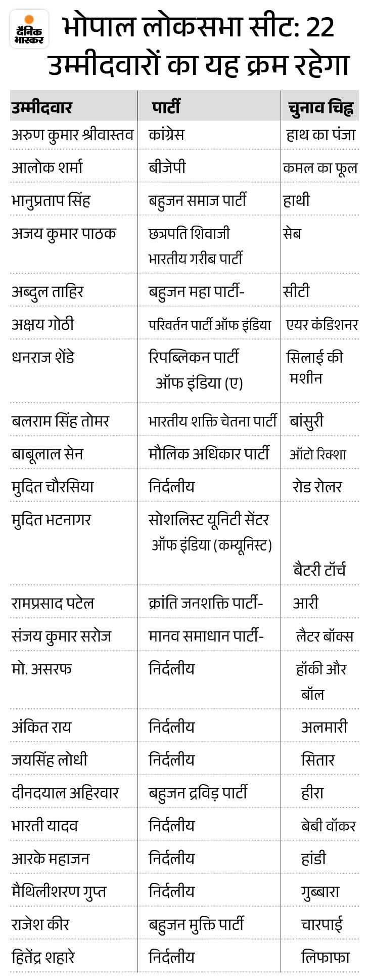 भोपाल में कितने प्रत्याशी मैदान में हैं
