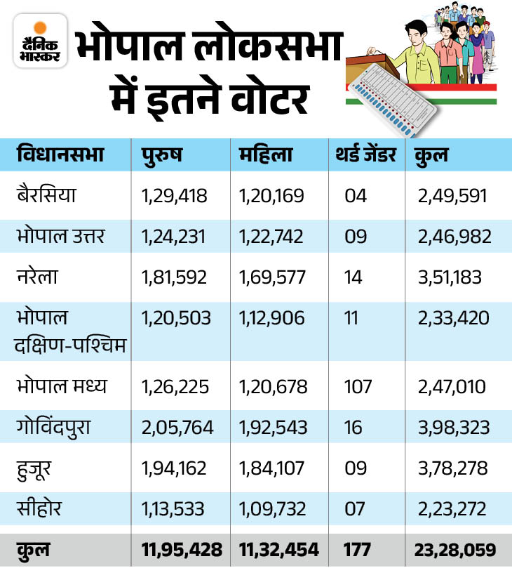 लोकसभा चुनाव 2019 के मुकाबले इस चुनाव में 2.26 लाख मतदाता अधिक हैं। इस बार कुल 23 लाख 28 हजार 59 मतदाता वोट डाल सकेंगे। पिछले चुनाव में कुल 21 लाख 2 हजार 54 मतदाता थे। इस तरह इस बार 2 लाख 26 हजार 5 मतदाता अधिक हैं।