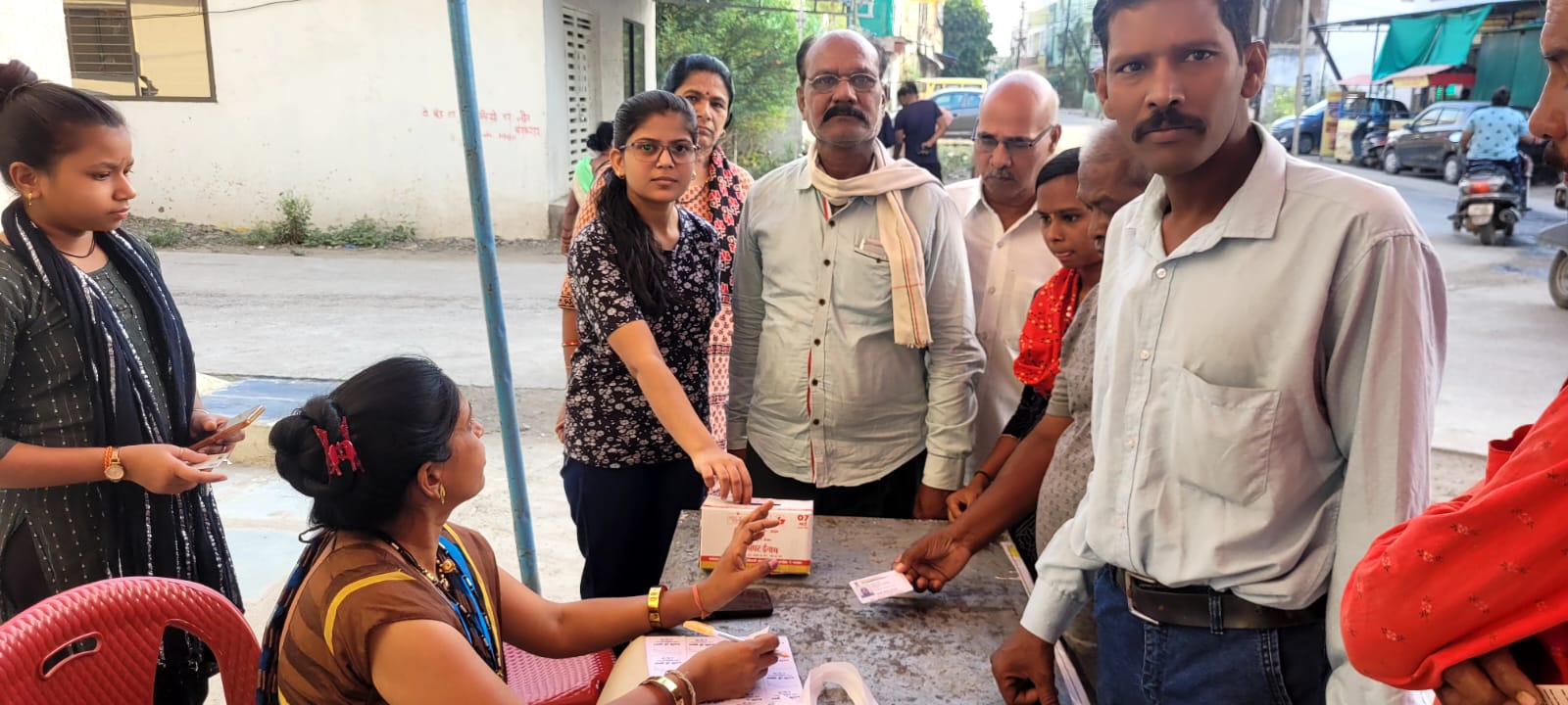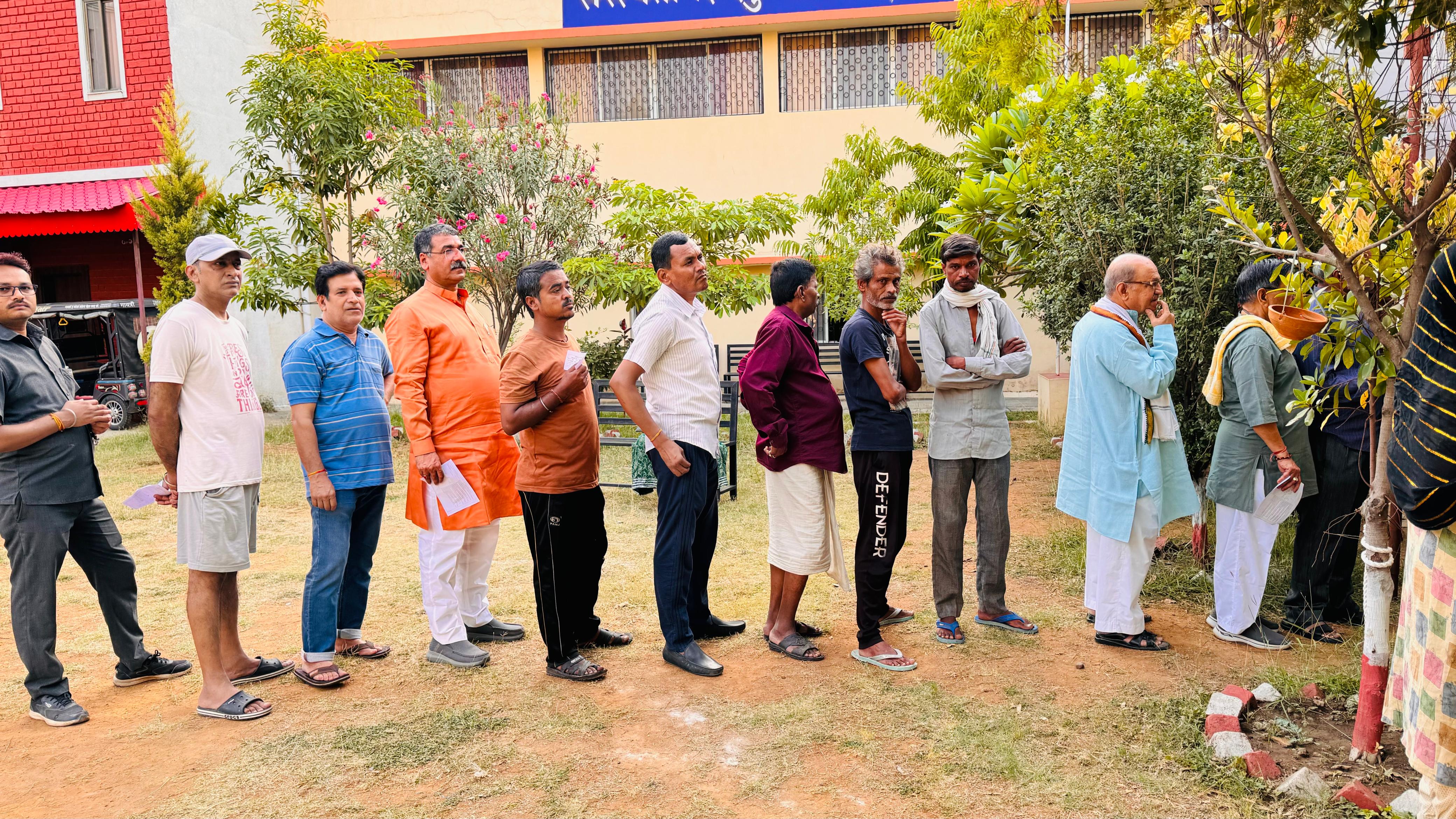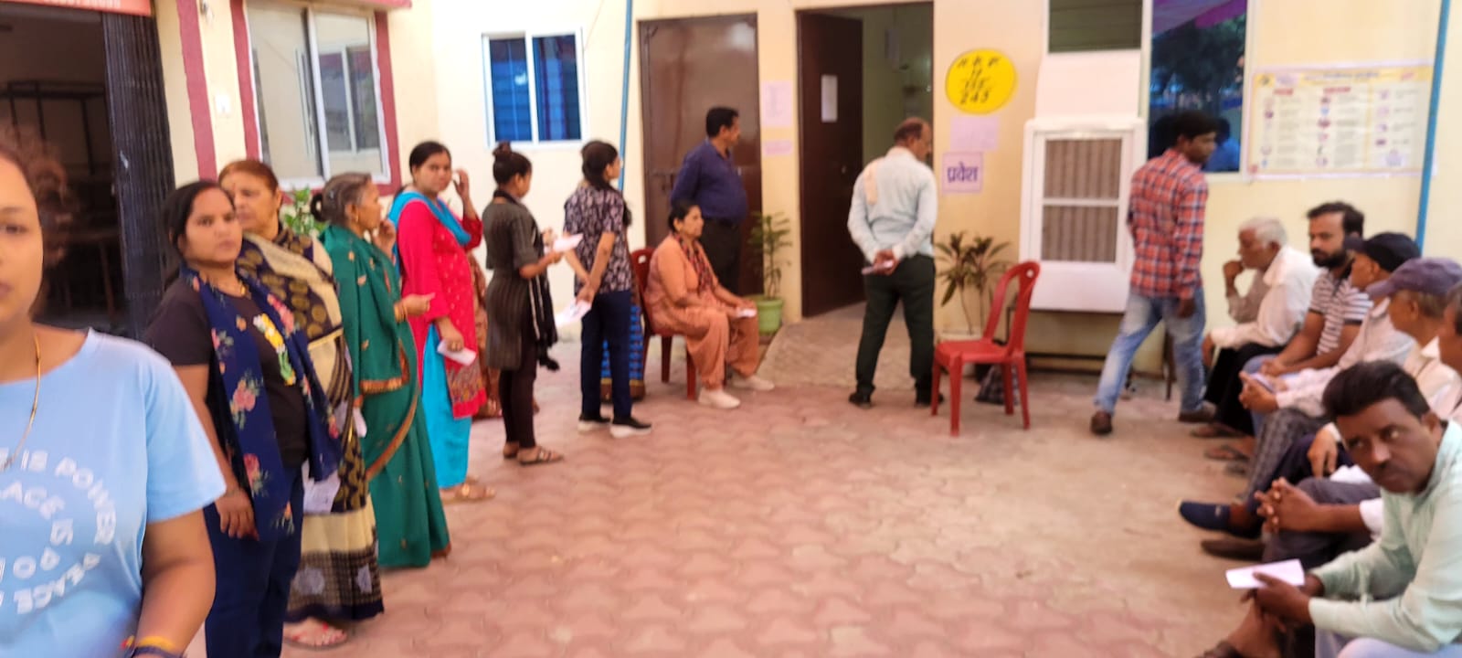 प्रियंका नगर में मतदान शुरू होने से पहले लगी कतार