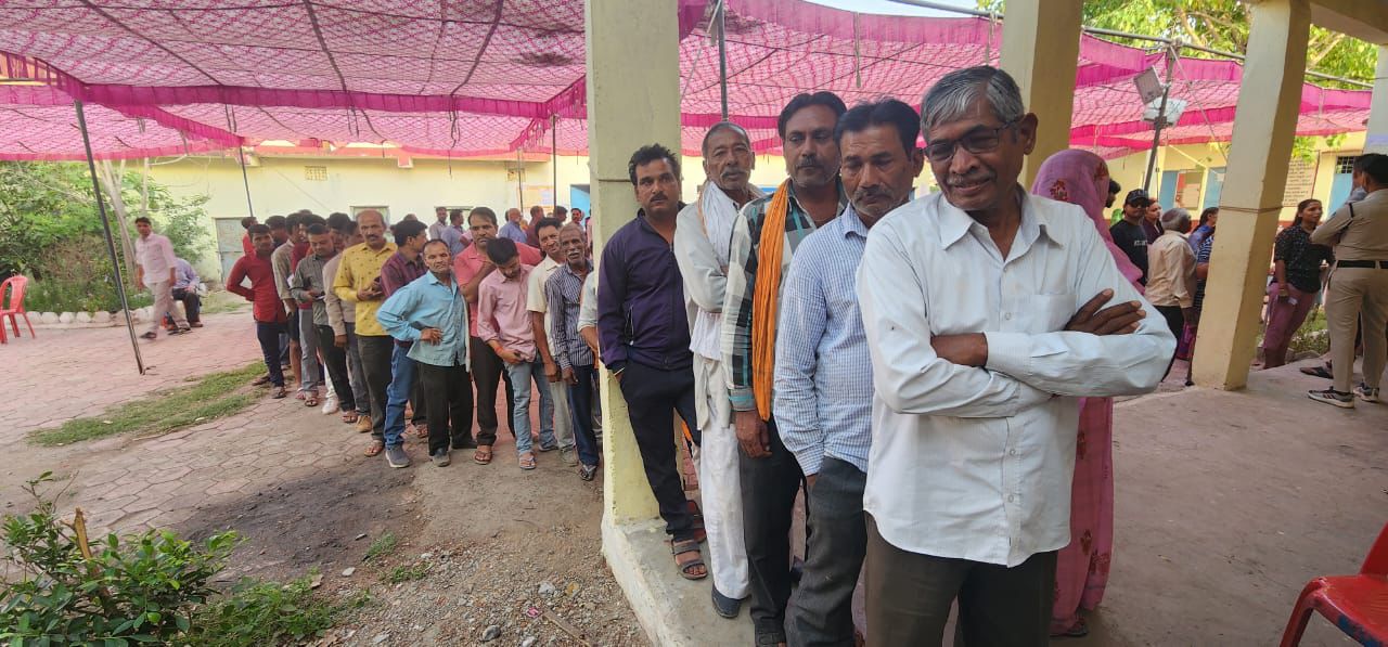 बैरसिया के मतदान केंद्रों पर सुबह से मतदाताओं की कतार है