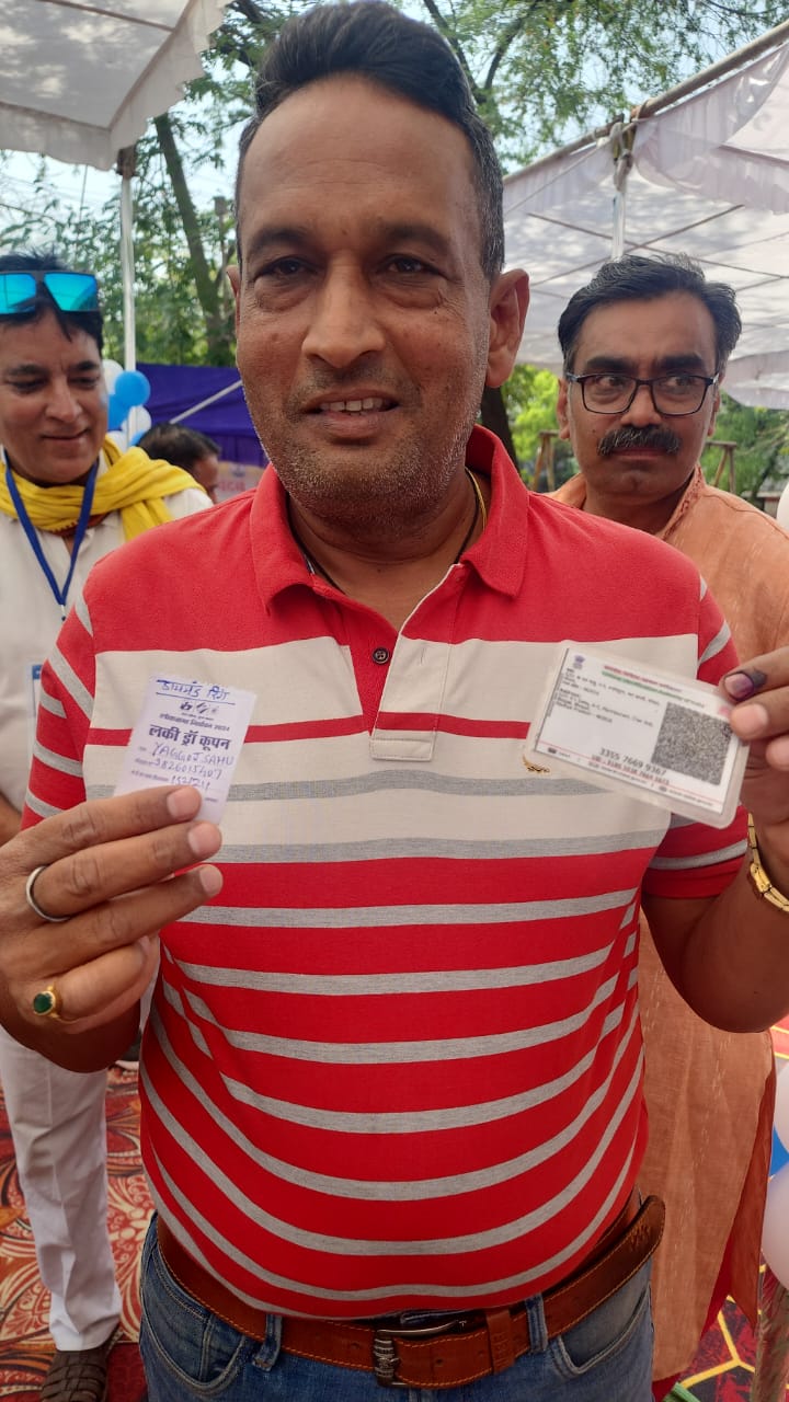 मतदान केंद्रों पर लकी ड्रॉ के कूपन दिए जा रहे हैं