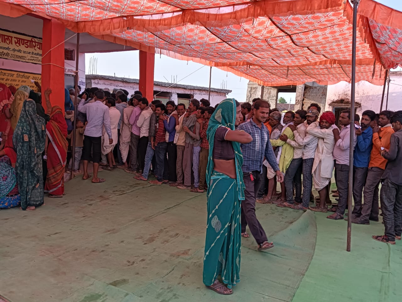 ग्रामीण क्षेत्र के मतदान केंद्र पर लगी कतार