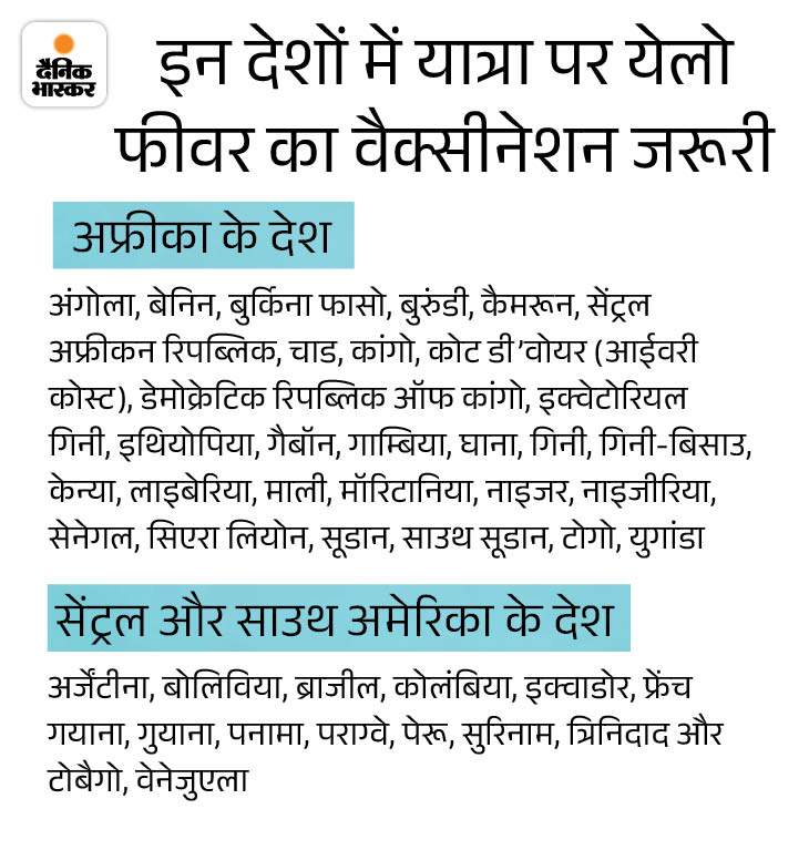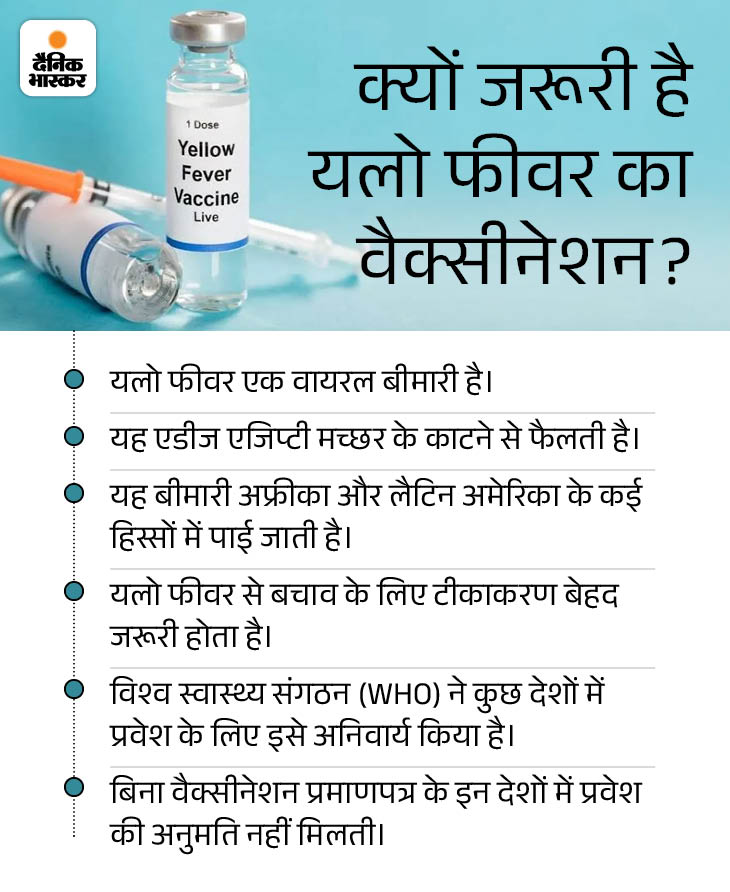 वैक्सीन की सप्लाई हिमाचल के रास्ते डॉक्टरों के मुताबिक, कोविड-19 महामारी ने यलो फीवर वैक्सीन के उत्पादन और आपूर्ति को भी प्रभावित किया है। विशेषज्ञों के अनुसार यह वैक्सीन ब्राजील, फ्रांस और रूस में बनती है और वहां से विश्व स्वास्थ्य संगठन (WHO) के जरिए भारत सरकार को दी जाती है।