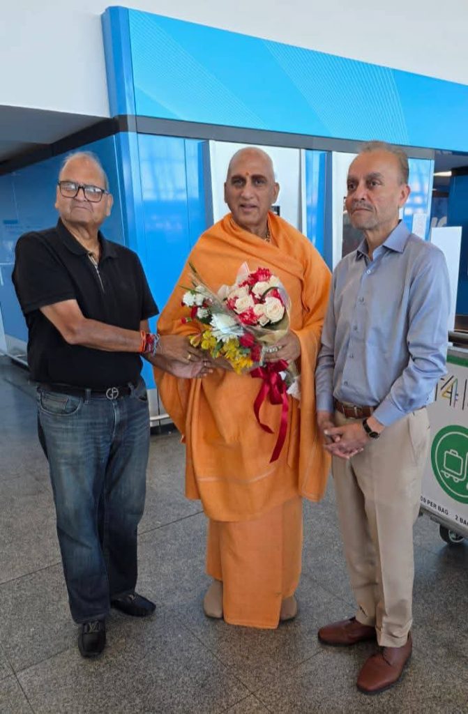 On the auspicious arrival of Shrimat Paramhans Parivrajakacharya, Shrotriya Brahmanishtha, Junapeethadheeshwar, Acharya Mahamandaleshwar, Anantashree Vibhushit Pujyapad Swami Avdheshanand Giri Ji Maharaj in the United States, a warm and heartfelt welcome was accorded at New York Airport.