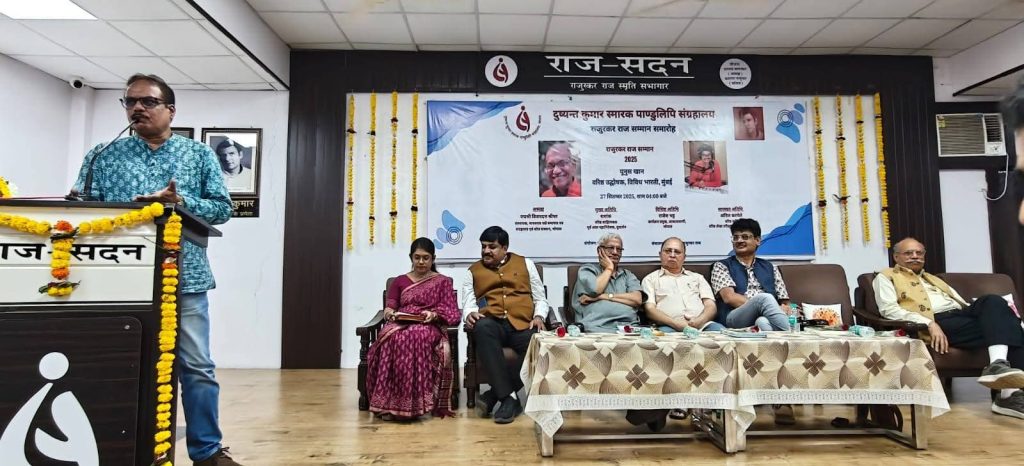 आज दुष्यंत कुमार स्मारक पांडुलिपि संग्रहालय की राज सदन राजूरकर राज सम्मान समारोह संपन्न हुआ ।इस वर्ष का यह सम्मान मुंबई विविध भारती के उद्घोषक यूनुस खान को दिया गया।