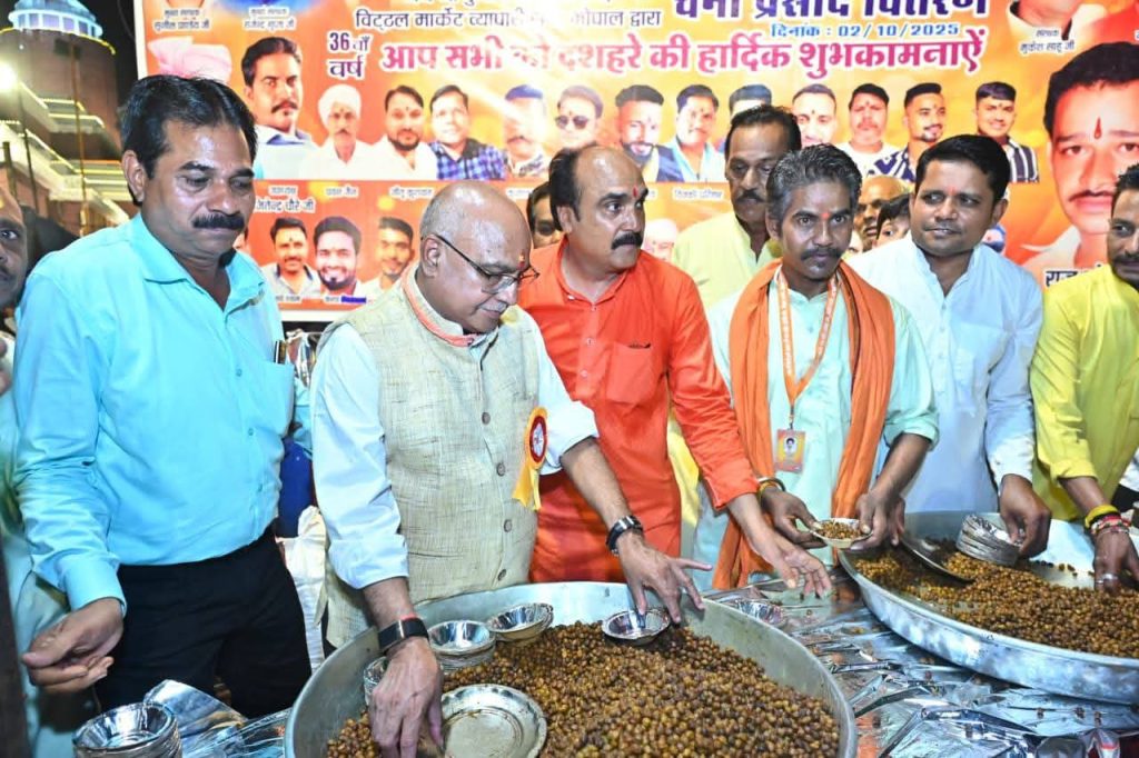 рдЬрдп рдорд╛рдВ рджреБрд░реНрдЧрд╛ рдЙрддреНрд╕рд╡ рд╕рдорд┐рддрд┐ рд╡рд┐рдЯреНрдард▓ рдорд╛рд░реНрдХреЗрдЯ рд╡реНрдпрд╛рдкрд╛рд░реА рд╕рдВрдШ рд▓рдЧрд╛рддрд╛рд░ 36рд╡рд╛рдВ рд╡рд░реНрд╖ рд╡рд┐рд╢рд╛рд▓ рдкреНрд░рд╕рд╛рдж (рдЪрдирд╛) рд╡рд┐рддрд░рдг рдХрд░рддреЗ рд╣реБрдП рдЖ рд░рд╣рд╛ рд╣реИ рдЗрд╕ рдЕрд╡рд╕рд░ рдкрд░ рдЖрдЬ рдкреНрд░рджреЗрд╢ рдЕрдзреНрдпрдХреНрд╖ рд╢реНрд░реА рд╣реЗрдордВрдд рдЦрдВрдбреЗрд▓рд╡рд╛рд▓ рдЬреА, рдкреНрд░рджреЗрд╢ рдордВрддреНрд░реА рд╢реНрд░реА рд░рд╛рд╣реБрд▓ рдХреЛрдард╛рд░реА рдиреЗ рдХрд╛рд░реНрдпрдХреНрд░рдо рдореЗрдВ рд╢рд╛рдорд┐рд▓ рд╣реЛрдХрд░ рдкреВрдЬрд╛ рдЕрд░реНрдЪрдирд╛ рдХрд░рддреЗ рд╣реБрдП рднрдЧрд╡рд╛рди рд╢реНрд░реА рд░рд╛рдо рдХреЗ рдЪрд┐рддреНрд░ рдкрд░ рдорд╛рд▓реНрдпрд╛рд░реНрдкрдг рдХрд┐рдпрд╛ рдЗрд╕рдХреЗ рдкрд╢реНрдЪрд╛рдд рд╕рднреА рджрд░реНрд╢рдирд╛рд░реНрдерд┐рдпреЛрдВ рдХреЛ рдкреНрд░рд╕рд╛рдж рд╡рд┐рддрд░рдг рдЕрдкрдиреЗ рд╣рд╛рдереЛрдВ рд╕реЗ рдХрд┐рдпрд╛, рд╕рднреА рдирд╛рдЧрд░рд┐рдХреЛрдВ рдХреЛ рджрд╢рд╣рд░реЗ рдХреА рд╢реБрднрдХрд╛рдордирд╛рдПрдВ рджреАред