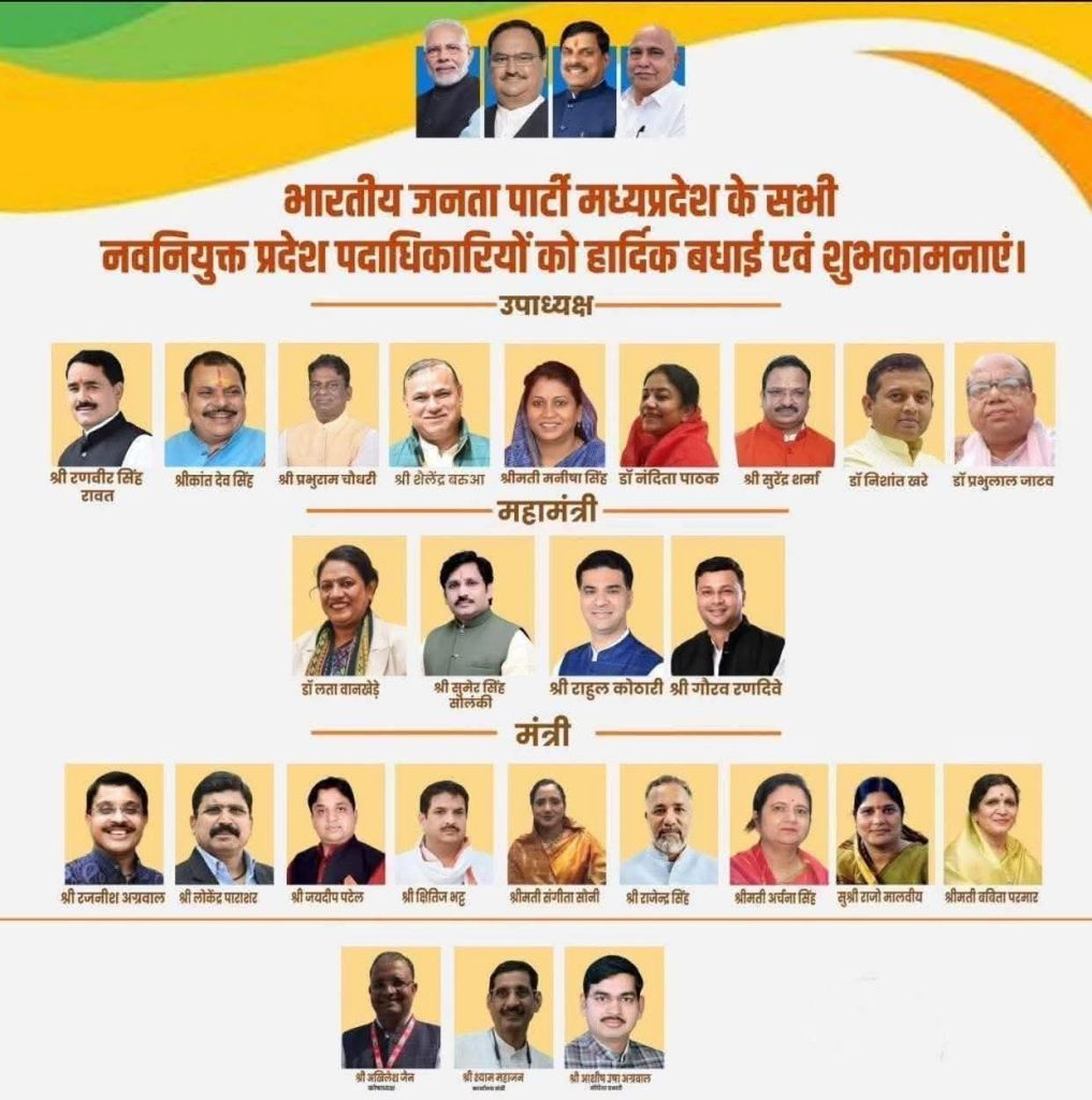 राज्य भारतीय जनता पार्टी मध्य प्रदेश के सभी नवनियुक्त प्रदेश पदाधिकारीयों को हार्दिक बधाई एवं बहुत-बहुत शुभकामनाएं admin October 24, 2025 0 Spread the love Post navigation Previous: भोपाल के करोंद इलाके से हुई युवक की गिरफ्तारीNext: हम आखिर किस तरह का विकास चाहते हैं? क्या हम अपनी ही सांसों को, अपने ही जीवन की जड़ों को काटकर विकास करना चाहते हैं? More Stories राज्य साधना सप्ताह में मप्र को अधिकतम पाठयक्रम पूरा करने राष्ट्रीय स्तर पर तीसरा स्थान admin April 18, 2026 0 राज्य मुख्यमंत्री डॉ. यादव ने गुरू अंगद देव जी के प्रकाश पर्व की शुभकामनाएं दीं admin April 18, 2026 0 राज्य 10वीं-12वीं बोर्ड के विद्यार्थियों को द्वितीय अवसर परीक्षा का मिलेगा मौका : मुख्यमंत्री डॉ. यादव admin April 18, 2026 0 Leave a Reply Cancel replyYour email address will not be published. Required fields are marked *Comment * Name * Email * Website Save my name, email, and website in this browser for the next time I comment. Δ