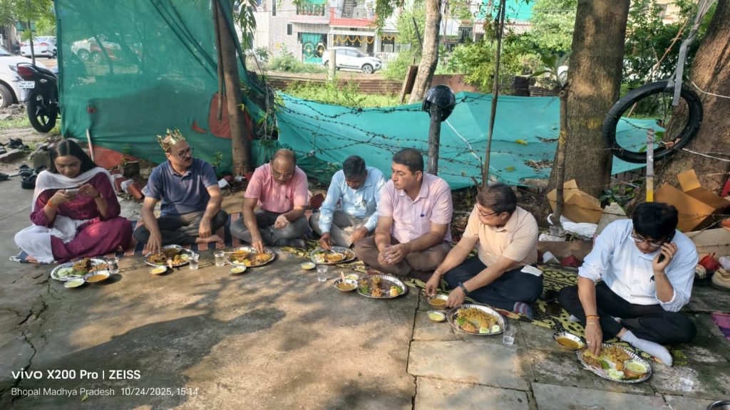 जनसंपर्क और मुख्यमंत्री प्रेस प्रकोष्ठ के लिए छायाकारी करने वाले श्री रविराज यादव अवधपुरी क्षेत्र में प्रगति नगर में रहते हैं। माता-पिता के पुराने मकान पर छोटा सा परिसर है। गोबर से लिपापुता प्यारा सा आंगन है। एक कुआं भी है पुराना। नीम आम और दूसरे पेड़ हैं। तुलसी जी का चबूतरा है जहां श्रद्धा से मस्तक झुक जाता है। पारंपरिक खटिया,उस पर दरी बिछी है। कुछ कुर्सियां भी लगी हैं। दाल बाफले तैयार हो रहे हैं।सभी साथी तन्मयता से अपना-अपना काम कर रहे। सलाद मिलाकर 10 से अधिक आइटम नहीं होंगे, लेकिन स्नेह ऐसा बरस रहा था कि पांच सितारा होटल की दावत भी फीकी पड़ जाए। वरिष्ठ अधिकारी साथी , समकक्ष साथी और मेरे जूनियर सभी साथ थे। कोई भेदभाव नहीं था। बहाना तो मेरी जन्म वर्षगांठ थी। दरअसल सभी को एक साथ मिलकर बैठकर साथ खाना, खाना था। जरूरी नहीं कि किसी हिल स्टेशन या रिसॉर्ट पर जाएं , ऐसे मिलन से लघु खुशियां विशाल हो जाती हैं।