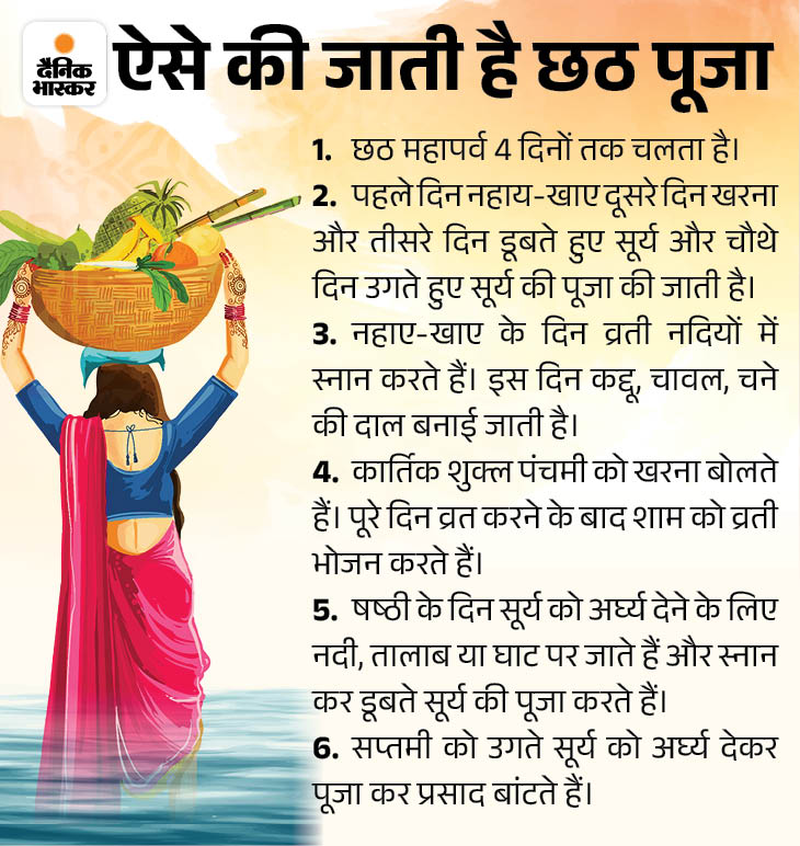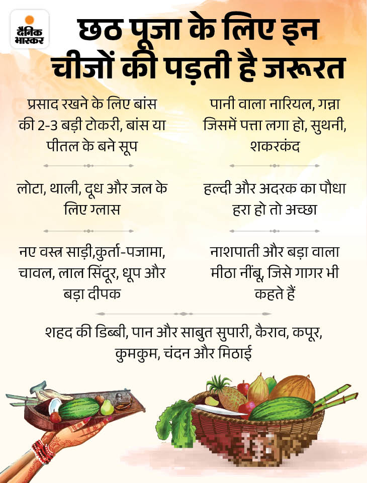 शाम को पूजा के लिए बांस की टोकरी और सूप में फल, ठेकुआ और दीप सजाए जाएंगे। इसी सजे हुए सूप से सूर्य देव और छठी मैया की पूजा की जाएगी।