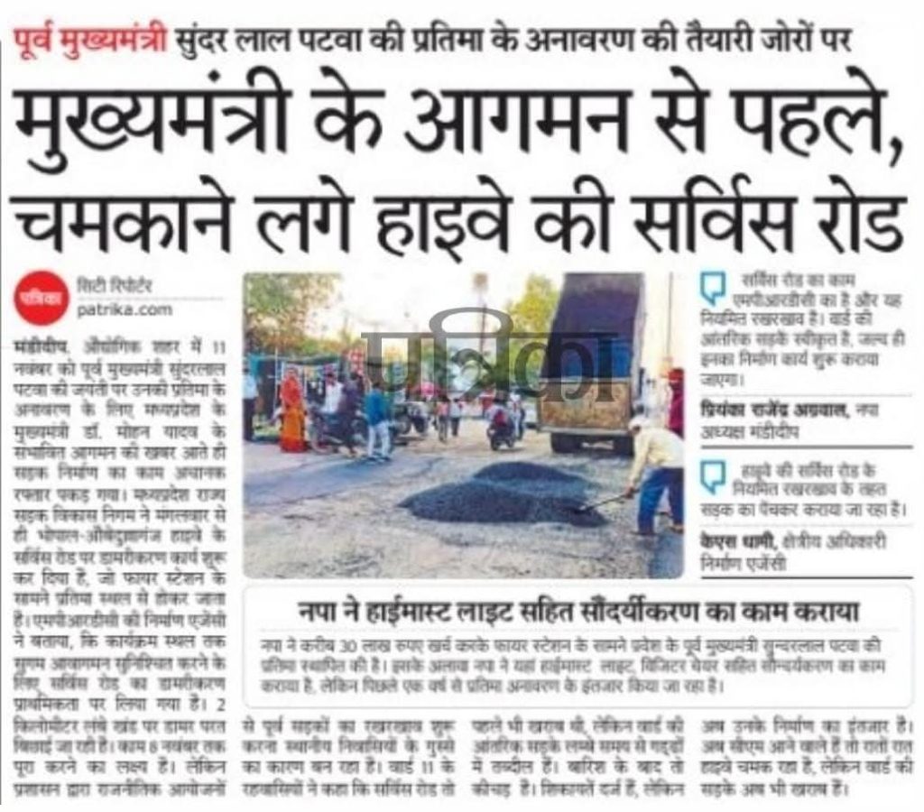 खबर ताजा है पर अंदाज पुराना.! मध्यप्रदेश के मुख्यमंत्री मोहन यादव सुन्दरलाल पटवा की मूर्ति का अनावरण करने भोपाल से सटे मंडीदीप आने वाले हैं.इस पर जुट गया पीडब्लूडी का अमला वहां की सड़क को संवारने. इस गलतफहमी में मत रहिएगा जब आप वहां से गुजरेंगे तब सड़क ऐसे ही सजी संवरी मिलेगी.कारण यह की भैया को भरमाने के लिए तदर्थ तौर से सड़क को सँवारा जाएगा और एकाध रोज में ही इसके चीथड़े उड़ने लगेंगे और यह फिर से हमारे आपके चलने लायक हो जाएगी.तो यह है लोकतंत्र के जनसेवकों के शाही ठाठबाट जिनके आगे पुराने राजा नवाबों के जलवे भी फीके नजर आएंगे.ऐसी नौटंकी मामा शिवराज के दौर में भी होती थी.
