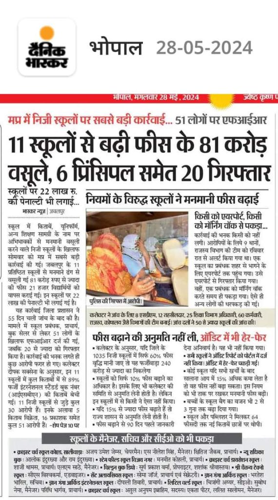 राज्य 11 स्कूलों से बड़ी फीस के 81करोड़ वसूले admin May 28, 2024 0 Spread the love Post navigation Previous: प्रॉपर्टी की रजिस्ट्री के लिए रिश्वत का रेट फिक्सNext: ०प्रतिदिन विचार (28/05/24)आँकड़ों पर नहीं, बेरोज़गारी की हक़ीक़त पर बात कीजिए -राकेश दुबे More Stories राज्य भोपाल-जोधपुर एक्सप्रेस की जनरेटर कार में धुआं admin April 20, 2026 0 राज्य एक लाख 45 हज़ार 71 किसानों से की जा चुकी है 63 लाख 27 हजार 410 क्विंटल गेहूँ की खरीदी : मंत्री श्री राजपूत admin April 20, 2026 0 राज्य भोपाल में 2 गाय गायब, फार्म हाउस में खून मिला admin April 20, 2026 0 Leave a Reply Cancel replyYour email address will not be published. Required fields are marked *Comment * Name * Email * Website Save my name, email, and website in this browser for the next time I comment. Δ