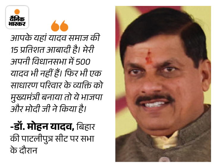 वरिष्ठ पत्रकार रंजन श्रीवास्तव कहते हैं- “मप्र के मुख्यमंत्री डॉ. मोहन यादव अपनी पार्टी के प्रचार के लिए लोकसभा चुनाव में उत्तर प्रदेश और बिहार के उन क्षेत्रों में गए, जहां यादव मतदाता निर्णायक फैक्टर हैं।