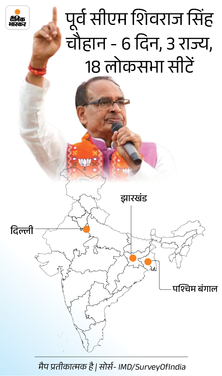 पश्चिम बंगाल की सभाओं में शिवराज महिलाओं और बच्चों से मिले। यानी बीजेपी ने शिवराज की मप्र में मामा वाली इमेज को बंगाल में भुनाने की कोशिश की है। शिवराज ने 6 दिनों में 3 राज्यों पश्चिम बंगाल, दिल्ली और झारखंड की 18 सीटों पर प्रचार किया।