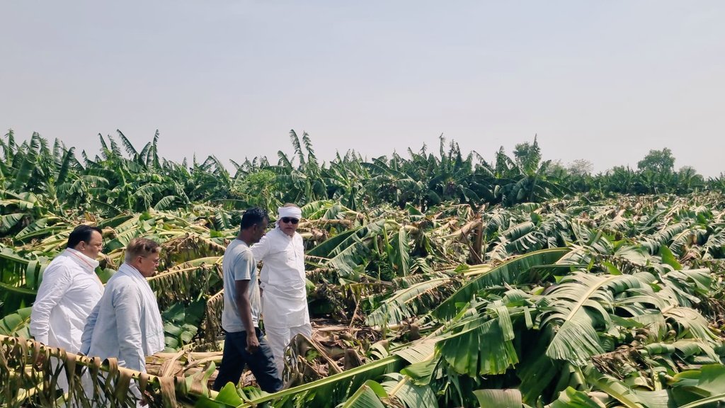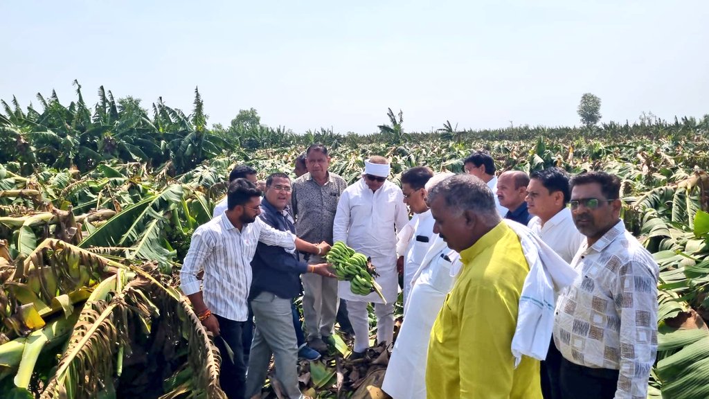 खरगोन/29 मई 2024/, पूर्व केन्द्रीय कृषि राज्यमंत्री और भारत कृषक समाज के अध्यक्ष अरूण यादव ने प्राकृतिक आपदा से निमाड़ अंचल सहित प्रदेश के कई इलाकों में करोड़ों रूपये की लागत से खेतों में खड़ी हुई फसलों की बर्बादी पर गहरी चिंता व्यक्त की है । श्री यादव ने आज बुधवार को सुबह बुरहानपुर जिले के लोनी, नाचनखेड़ा, नीमगांव, रायगांव, सारोला, हिंगना, अम्बाड़ा, देवरी सहित कई गॉवों में जाकर केले और अन्य फसलों की बर्बादी देखी । उन्होनें बर्बाद हुई केले की फसल का निरीक्षण कर प्रभावित किसानों से भी चर्चा की ।