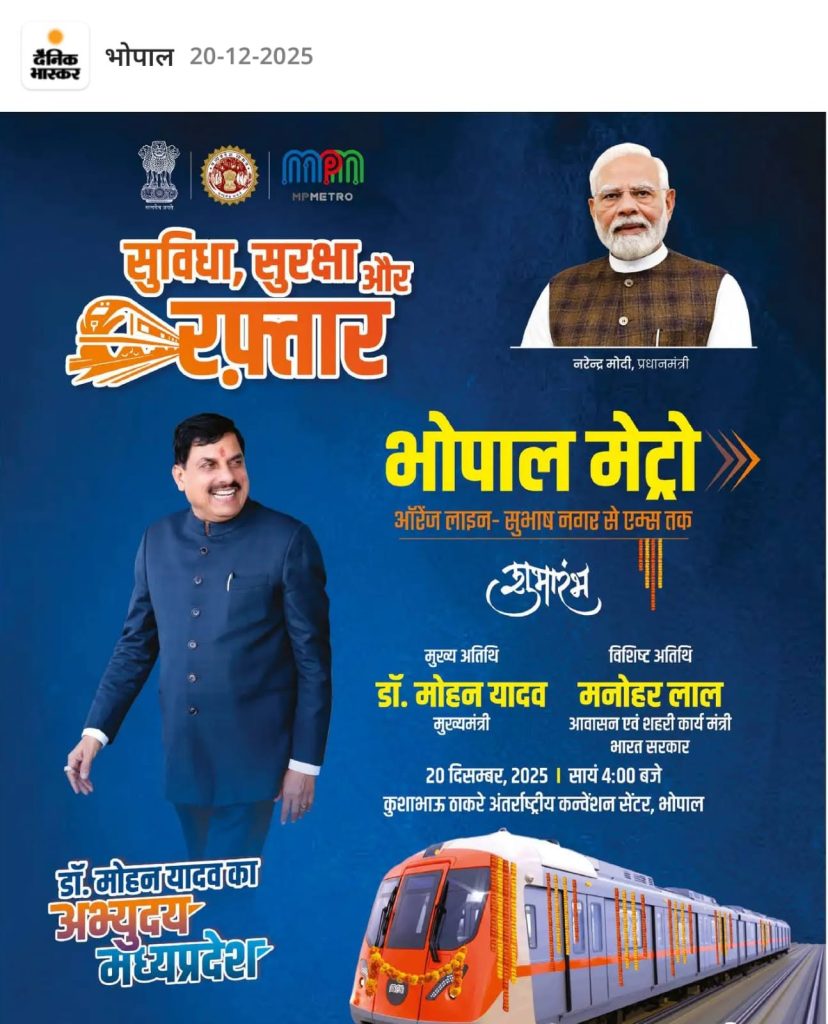 यह पहला मौक़ा नहीं है जब वजनदार नेताओं के साथ मध्यप्रदेश में ऐसी अशिष्टता हुई है.भाजपा के राष्ट्रीय अध्यक्ष और केन्द्रीय मंत्री जेपी नड्डा आज धार और बैतूल मे विभिन्न समारोहों में मुख्य अतिथि थे और अध्यक्षता मुख्यमंत्री यादव कर रहे थे.इनका पूरे पेज का मध्यप्रदेश का विज्ञापन छपा है उसमे प्रधानमंत्री के साथ मुख्यमंत्री का फोटो है पर मुख्य अतिथि नड्डा का नहीं.? भोपाल में मेट्रो शुभारंभ में केन्द्रीय मंत्री मनोहरलाल खट्टर विशिष्ट और मुख्यमंत्री यादव मुख्य अतिथि थे.इसके मध्यप्रदेश के पूरे पेज विज्ञापन मे मोदी के साथ सूटबूट में यादव हैं पर खट्टर नहीं.? मुख्यमंत्री के सूटबूट जिक्र इसलिए क्योंकि दो दिन पहले ही वरिष्ठ मंत्री कैलाश विजयवर्गीय उनके सूटबूट पहनावे पर कटाक्ष कर चुके हैं.
