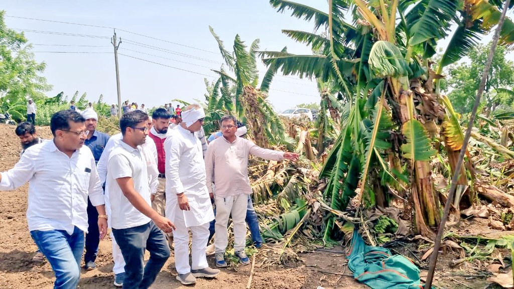 पूर्व केन्द्रीय कृषि राज्यमंत्री और भारत कृषक समाज के अध्यक्ष अरूण यादव ने प्राकृतिक आपदा से निमाड़ अंचल सहित प्रदेश के कई इलाकों में करोड़ों रूपये की लागत से खेतों में खड़ी हुई फसलों की बर्बादी पर गहरी चिंता व्यक्त की है । श्री यादव ने आज बुधवार को सुबह बुरहानपुर जिले के लोनी, नाचनखेड़ा, नीमगांव, रायगांव, सारोला, हिंगना, अम्बाड़ा, देवरी सहित कई गाँवों में जाकर केले और अन्य फसलों की बर्बादी देखी । उन्होनें बर्बाद हुई केले की फसल का निरीक्षण कर प्रभावित किसानों से भी चर्चा की ।
