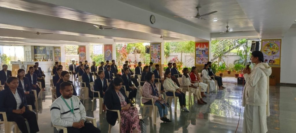 वरिष्ठ राजयोगी शिक्षिका _बीके हेमा बहन_ द्वारा विद्यार्थियों को बताया गया कि राजयोग केवल ध्यान की विधि नहीं है, बल्कि आत्म-चेतना में स्थित होकर परमात्मा से जुड़ने की एक वैज्ञानिक एवं व्यावहारिक पद्धति है, जो मन, बुद्धि और संस्कारों को सकारात्मक दिशा प्रदान करती है।