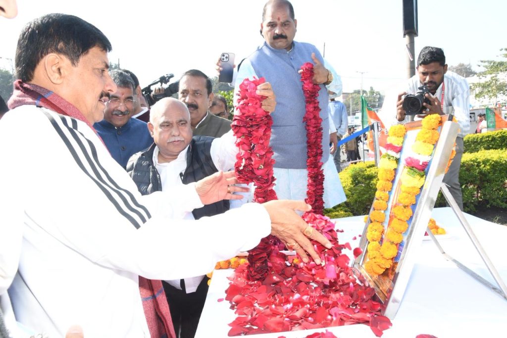 मुख्यमंत्री डॉ. मोहन यादव, भारतीय जनता पार्टी के प्रदेश अध्यक्ष व विधायक श्री हेमंत खण्डेलवाल एवं प्रदेश संगठन महामंत्री श्री हितानंद जी ने सोमवार को स्वामी विवेकानंद जी की 163वीं जयंती पर पॉलिटेक्निक चौराहा स्थित प्रतिमा पर माल्यार्पण कर श्रद्धासुमन अर्पित किए। इस दौरान जन अभियान परिषद के उपाध्यक्ष डॉ. मोहन नागर, विधायक श्री भगवानदास सबनानी, महापौर श्रीमती मालती राय, युवा मोर्चा प्रदेश अध्यक्ष श्री श्याम टेलर, जिला प्रभारी श्री महेन्द्र यादव, जिला अध्यक्ष श्री रविन्द्र यति सहित पार्टी पदाधिकारी, जनप्रतिनिधि एवं कार्यकर्ता उपस्थित रहे।