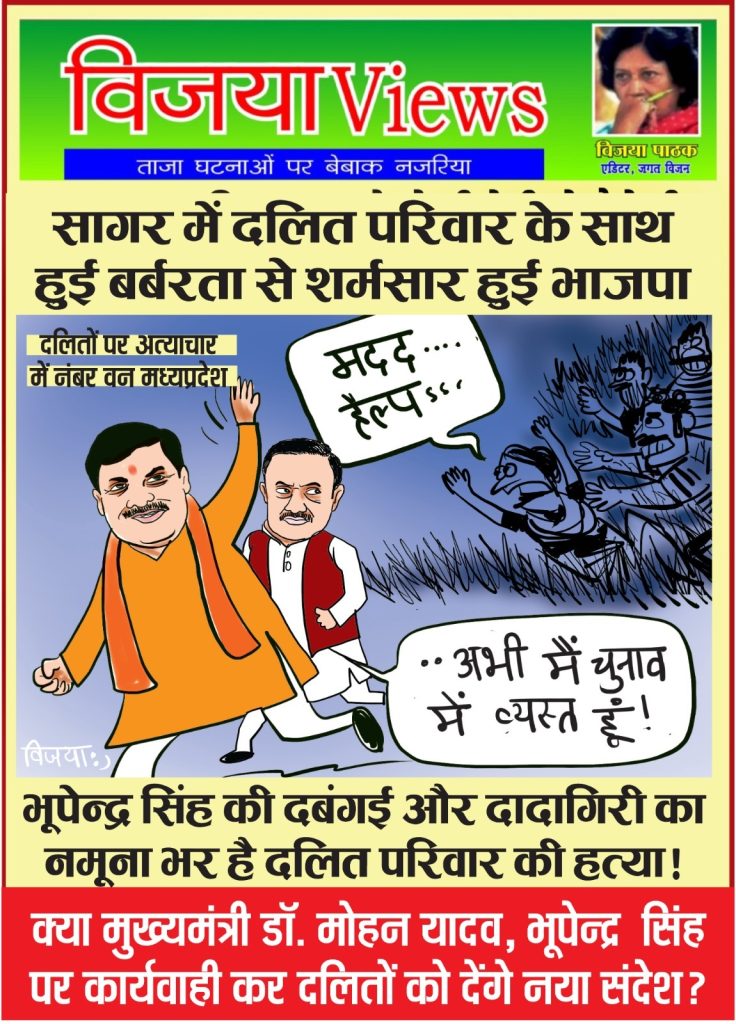 दलित बंधुओं को खुद का हितैषी बताने वाली केंद्र की नरेन्द्र मोदी और राज्य की मोहन यादव की सरकार के सभी वायदे दिन-प्रतिदिन खोखले साबित होते जा रहे हैं। आये दिन जिस तरह से मध्यप्रदेश में दलित वर्ग के लोगों के साथ आपराधिक घटनाएं हो रही हैं उन्हें देखकर तो ऐसा लगता है कि अब रक्षक ही भक्षक बनते जा रहे हैं। जिन्हें जनता ने अपनी सुरक्षा के लिये चुनकर संसद और विधानसभा में भेजा हैं वहीं अब जनता की रखवाली करने के बजाय उनकी जान लेने की कोशिश कर रहे हैं। ताजा मामला मध्यप्रदेश के सागर जिले का है जहां हाल ही में एक गरीब दलित परिवार की बेटी को अपनी जान से हाथ धोना पड़ा। यह वही सागर जिला है जहां कुछ दिन पूर्व ही प्रधानमंत्री नरेन्द्र मोदी संत रविदास की स्मृति में तैयार हो रहे लोक का भूमिपूजन करने पहुंचे थे। आज वही बुंदेलखंड की भूमि एक दलित समाज की बेटी के खून से सिंचित हो गई है। समझ ही नहीं आ रहा कि आखिर मध्यप्रदेश में कब तक कमजोर वर्ग के लोगों पर इस तरह के जुल्म होते रहेंगे, कब तक यह लोग खुद को सुरक्षित महसूस करेंगे। और सबसे बड़ा सवाल तो यह है कि आखिर कब तक सत्ता के नशे में चूर नेता और कार्यकर्ता मंत्रियों के संरक्षण में इन मासूमों की असमत से खिलवाड़ करते रहेंगे।