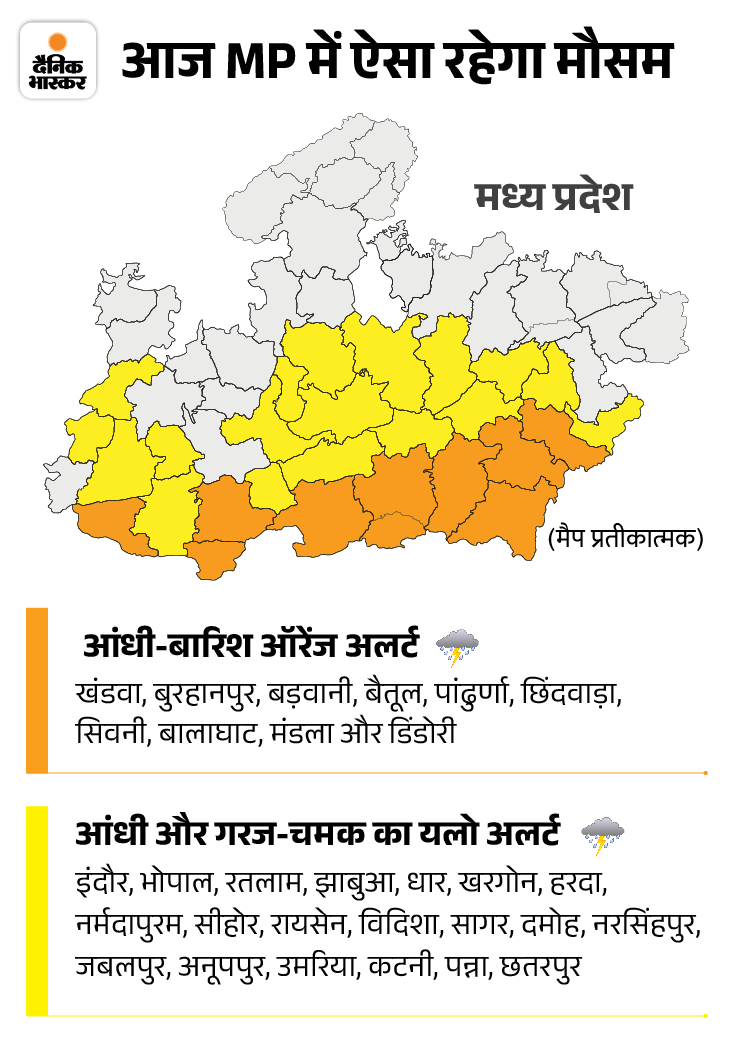 प्रदेश में अभी वेस्टर्न डिस्टरबेंस (पश्चिमी विक्षोभ), साइक्लोनिक सकुर्लेशन एक्टिव है। इस वजह से प्रदेश में आंधी-बारिश का दौर चल रहा है। रविवार को धार, छिंदवाड़ा, रतलाम समेत कई शहरों में आंधी-बारिश वाला मौसम रहा। दूसरी ओर, प्रदेश के कुछ शहरों में गर्मी का असर भी देखने को मिला।