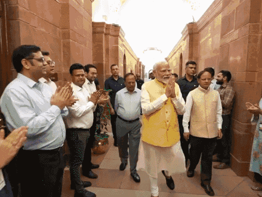 नरेंद्र मोदी ने रविवार को तीसरी बार प्रधानमंत्री पद की शपथ ली। उनके साथ 71 मंत्रियों ने शपथ ली, इनमें 11 सहयोगी दलों के हैं। शपथ लेने के बाद सोमवार को PM मोदी ने प्रधानमंत्री कार्यालय पहुंचकर कार्यभार संभाला। उन्होंने सबसे पहले किसान सम्मान निधि की फाइल पर साइन किए। PMO पहुंचने पर कर्मचारियों ने मोदी का स्वागत किया।