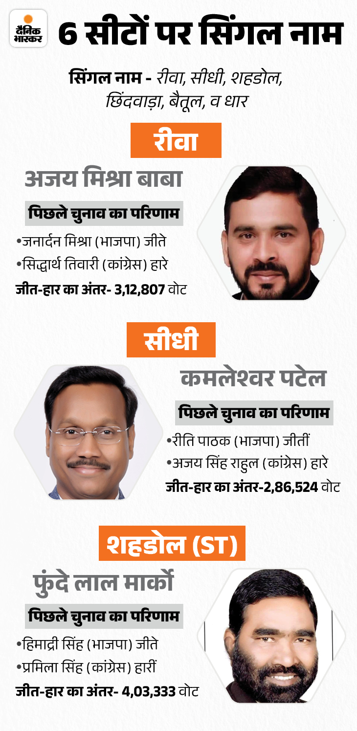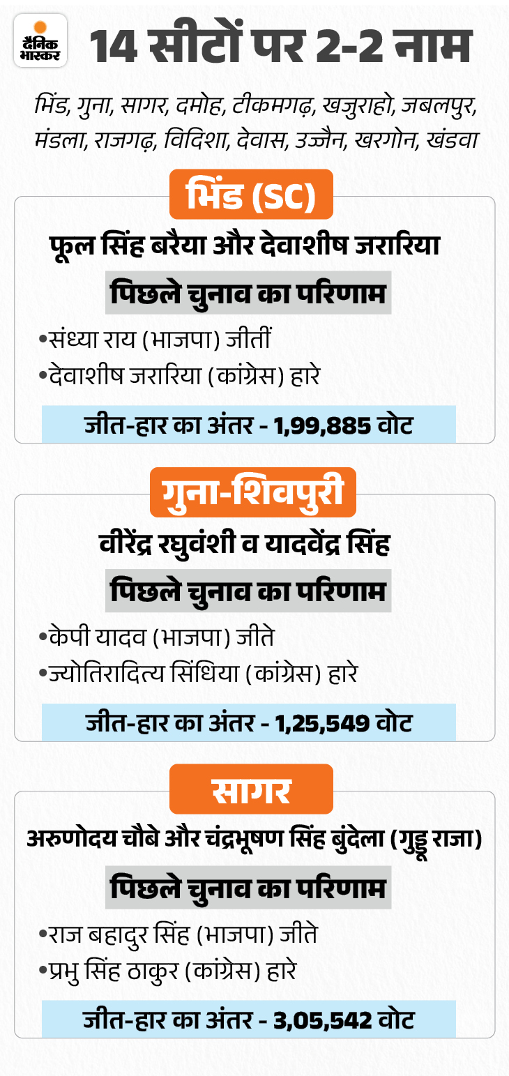 6 सीटों पर सिंगल नाम, 14 पर 2 नामों का पैनल