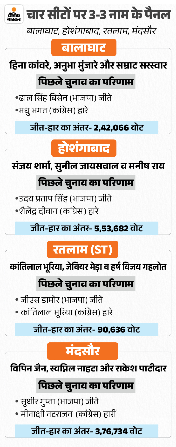 चार सीटों पर 3-3 नाम के पैनल