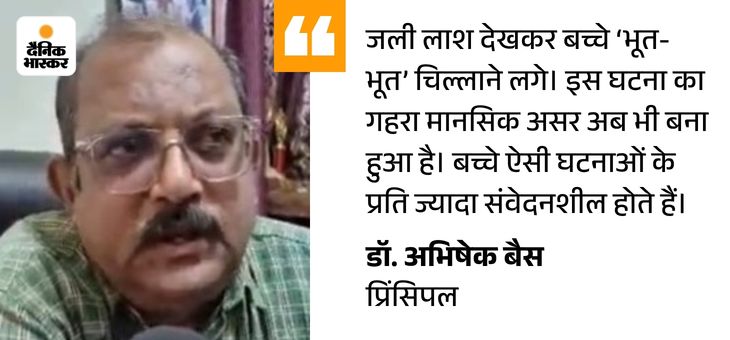 प्रिंसिपल डॉ. अभिषेक बैस ने बताया कि एक साल पहले कुछ लोग स्कूल में घुसे और बाथरूम में एक व्यक्ति की हत्या कर शव जला दिया था। यहां एक बार तलवार और महिलाओं के कपड़े भी मिल चुके हैं।