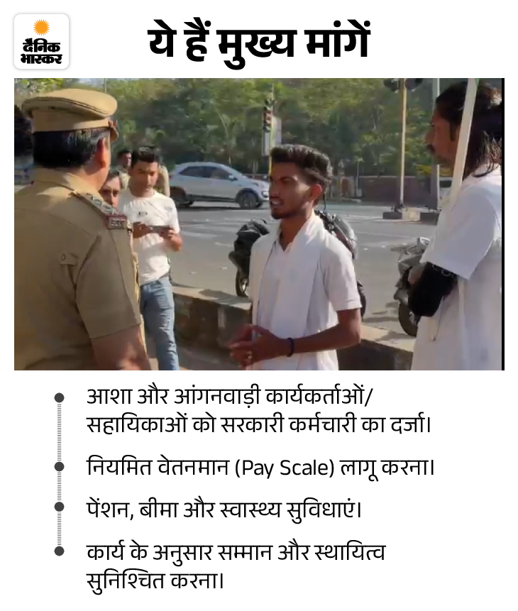 आंगनवाड़ी और आशा कार्यकर्ताओं को सरकारी कर्मचारी का दर्जा दिलाने की मांग को लेकर निकले छात्र नेता रामकुमार नागवंशी की पदयात्रा भोपाल पहुंचते ही रुक गई। करीब 200 किलोमीटर की यात्रा कर राजधानी पहुंचे नागवंशी और उनके साथियों को पुलिस ने बरकतुल्ला यूनिवर्सिटी के पास रोक लिया। इसके बाद उन्हें आगे बढ़ने से मना करते हुए एक होटल के पास बैठा दिया गया।