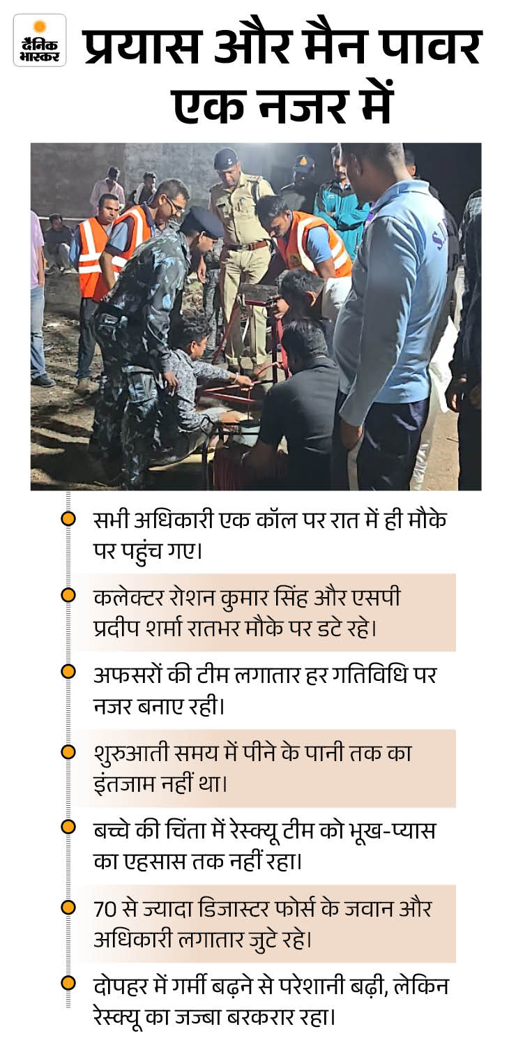 कलेक्टर, एसपी समेत एसडीआरएफ और एनडीआरएफ की टीमें गुरुवार रात से ही मौके पर डटी रहीं। इसके बाद भी बच्चे को बचाया नहीं जा सका। इमरजेंसी हालात में भरोसा जगाने वाली यही टीमें जब नाकाम दिखती हैं, तो सवाल और गहरे हो जाते हैं कि आखिर चूक कहां है?