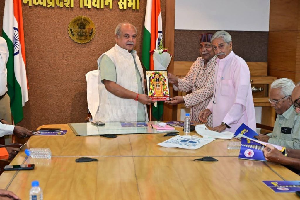 सम्माननीय विधानसभा अध्यक्ष श्री नरेंद्र सिंह तोमर जी को मध्य प्रदेश विधानसभा परिसर में में वरिष्ठ पत्रकार संघ का स्मारिका विमोचन में सम्मिलित हुआ अवसर पर जनसंवेदना के 21 वर्ष पूर्ण होने पर अयोध्या के श्री राम का छाया चित्र स्मृति चिन्ह के रूप में भेंट किया संस्थापक अध्यक्ष राधेश्याम अग्रवाल