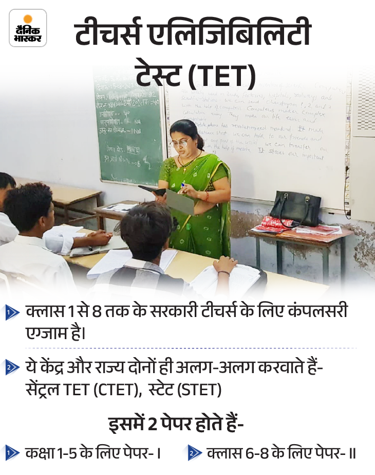 जिन टीचर्स की नौकरी को 5 साल से ज्यादा बचे हैं, उन्हें टीचर्स एलिजिबिलिटी टेस्ट (TET) क्वालिफाई करना जरूरी होगा। अगर ऐसा नहीं किया तो उन्हें इस्तीफा देना होगा या फिर कंपल्सरी रिटायरमेंट लेना होगा।