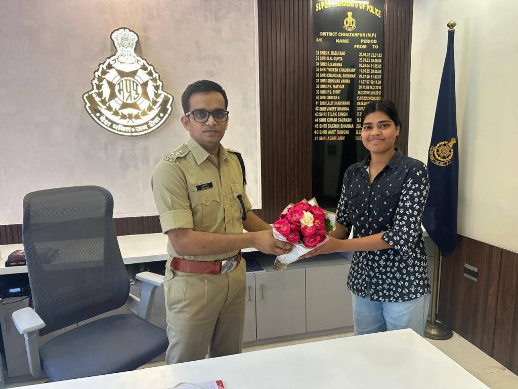 पुलिस अधीक्षक छतरपुर श्री अगम जैन द्वारा उपरोक्त तीनों चयनित अभ्यर्थियों को सम्मानित किया गया। इस अवसर पर उन्होंने अभ्यर्थियों को आगामी प्रतियोगी परीक्षाओं में सहभागिता हेतु मार्गदर्शन प्रदान करते हुए उनके उज्ज्वल भविष्य की शुभकामनाएं दीं।