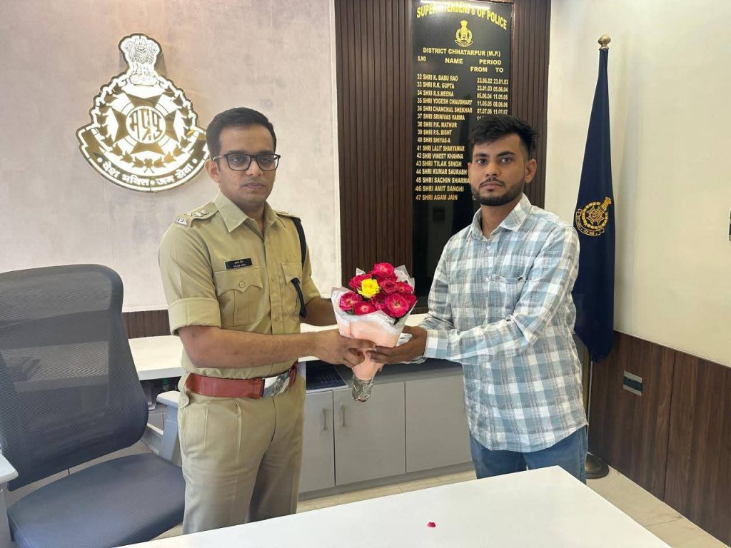 पुलिस अधीक्षक छतरपुर द्वारा मध्य प्रदेश पुलिस आरक्षक भर्ती परीक्षा में चयनित, दिशा लर्निंग सेंटर से अध्यनरत 3 अभ्यर्थियों को किया गया सम्मानित