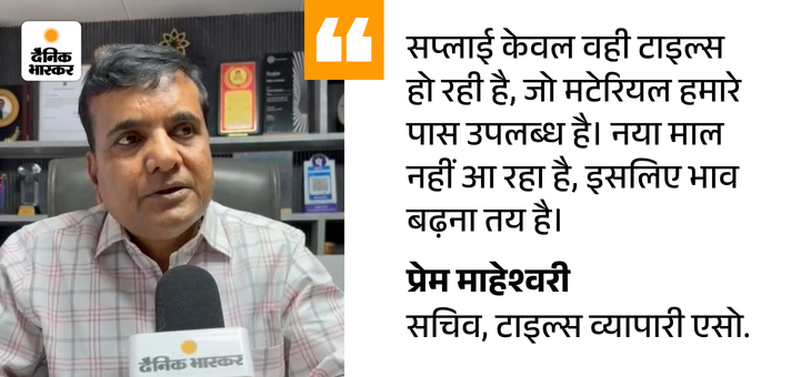 टाइल्स एंड सेनेटरी वेयर व्यापारी एसोसिएशन के सचिव प्रेम माहेश्वरी के अनुसार यदि युद्ध जारी रहा तो अगले 15 दिनों में कीमतों में 20-30 पर्सेंट का और उछाल आ सकता है। ग्राहक को उपलब्ध स्टॉक में से ही चुनाव करना पड़ रहा है।