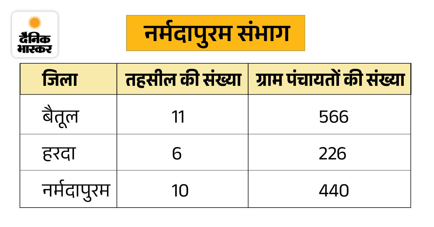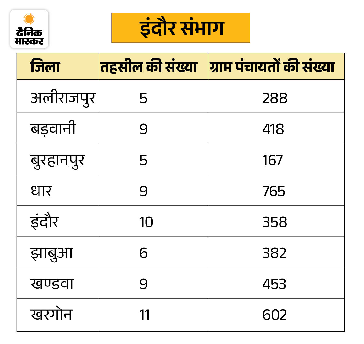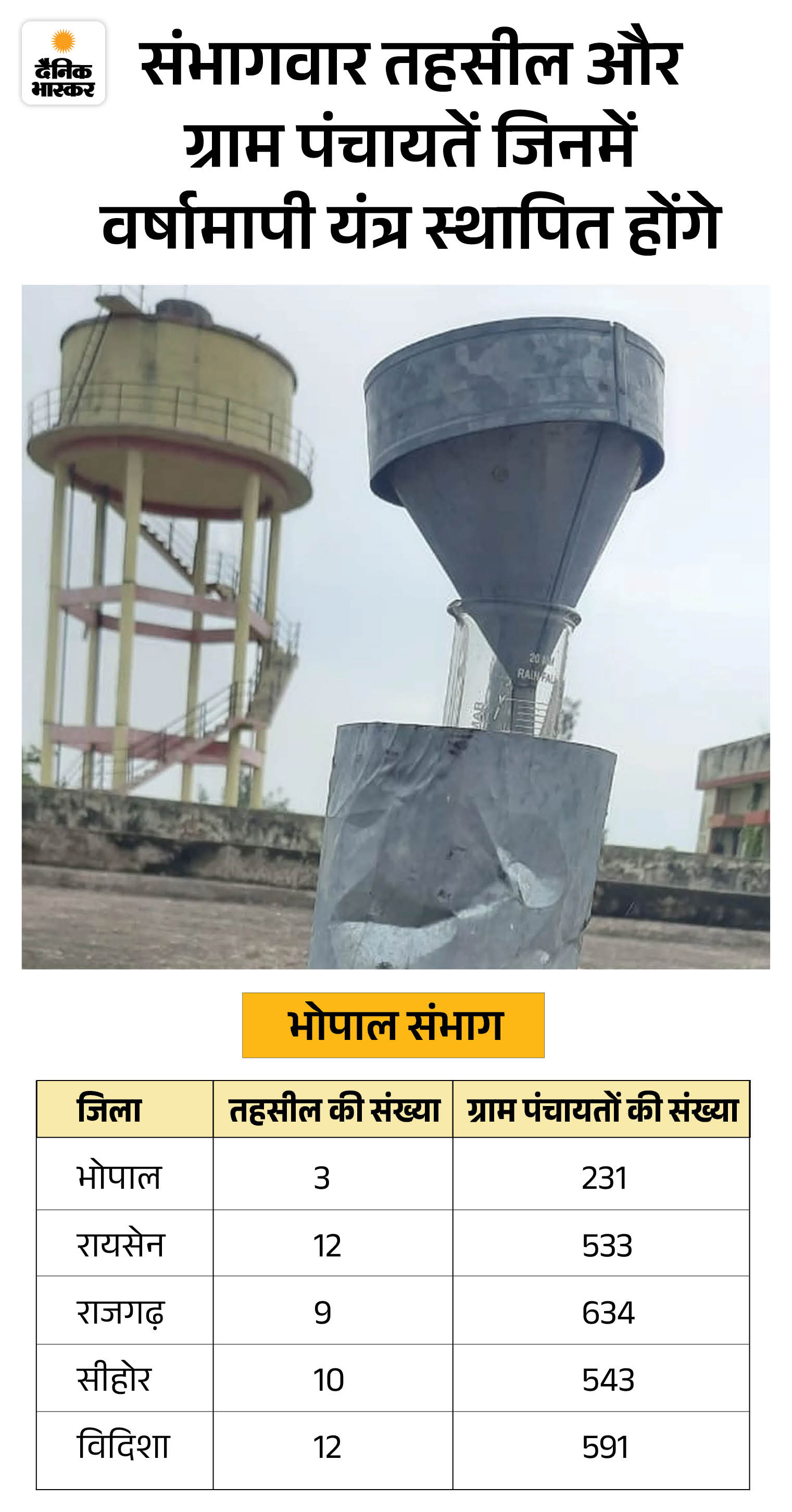संभागवार तहसील और ग्राम पंचायतें जिनमें वर्षामापी यंत्र स्थापित होंगे