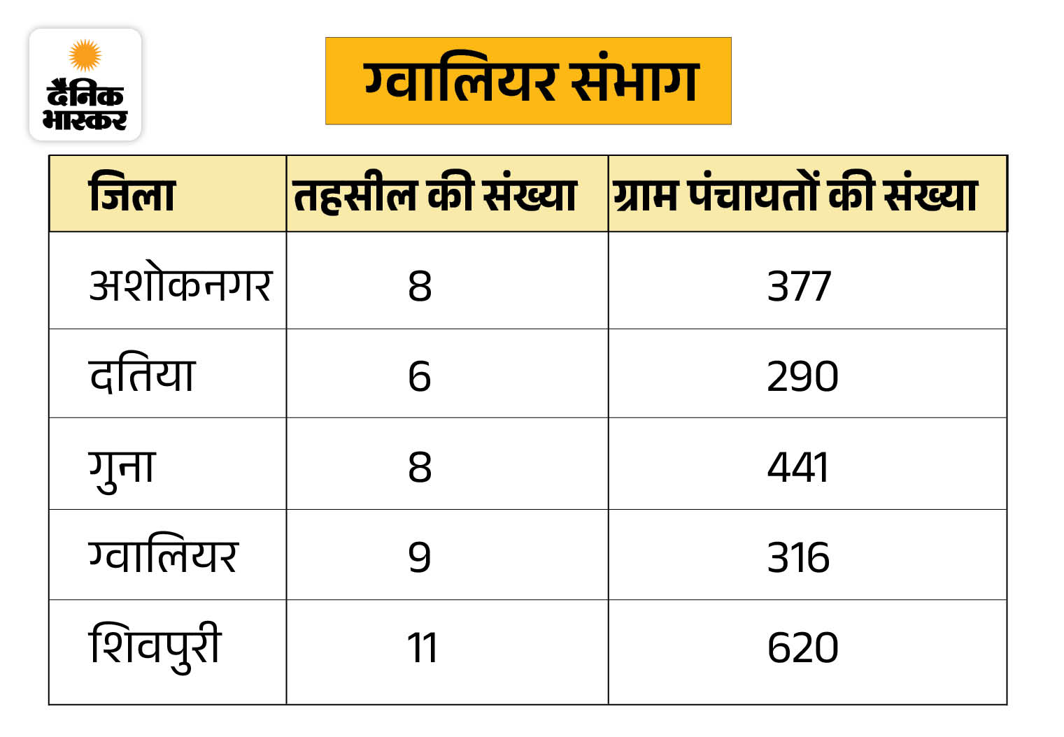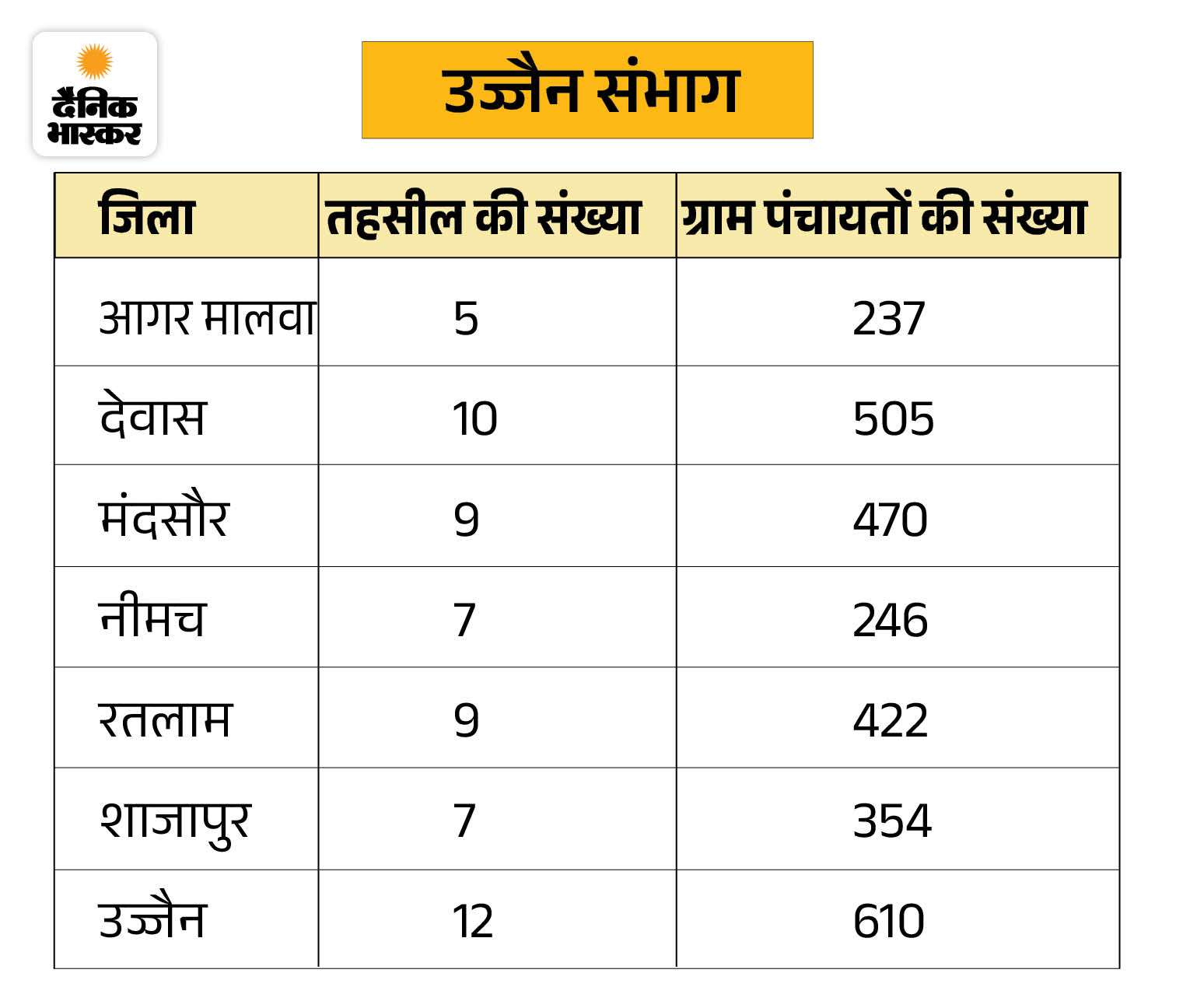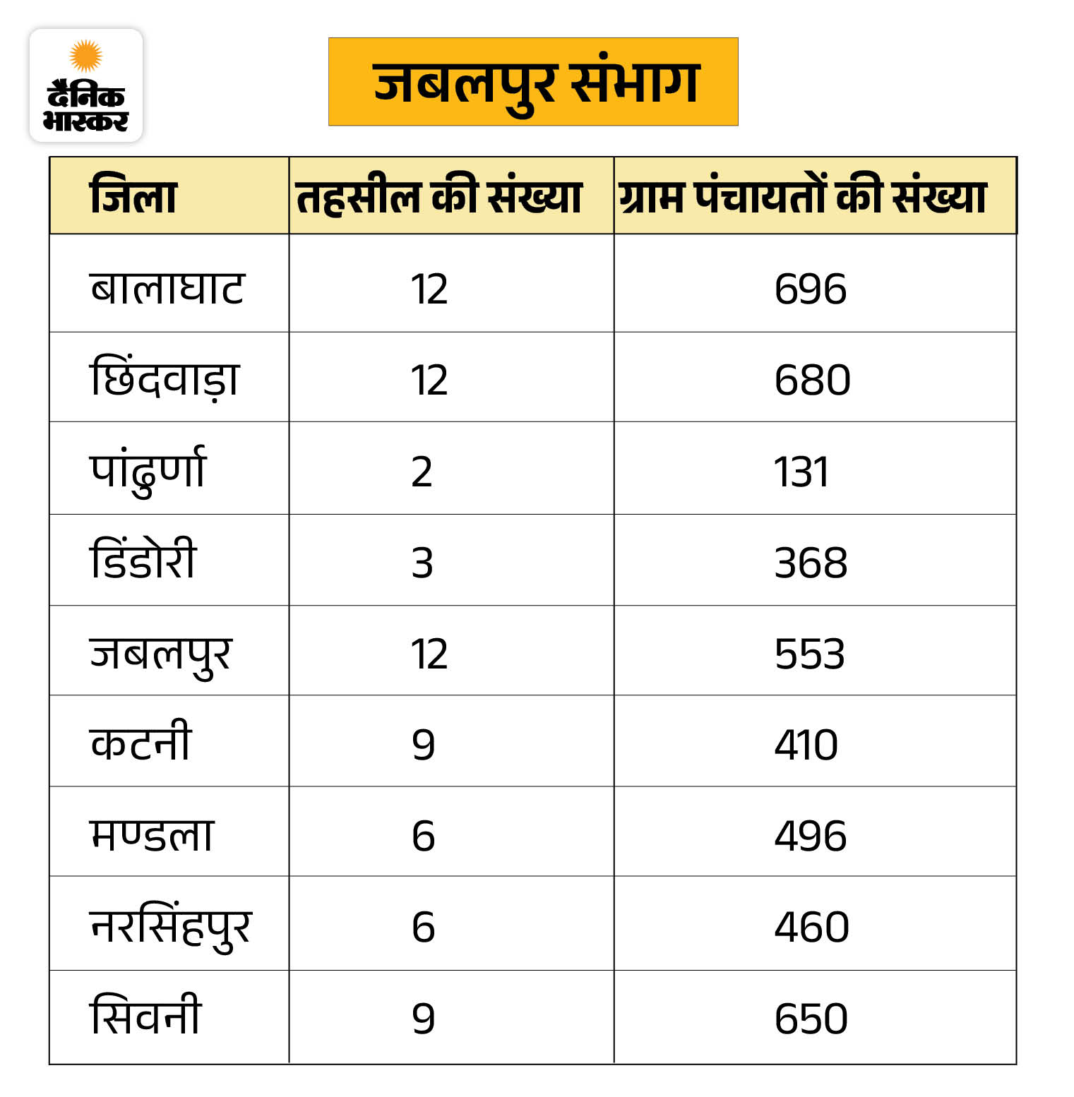 | जिला | तहसील की संख्या | ग्राम पंचायतों की संख्या |
