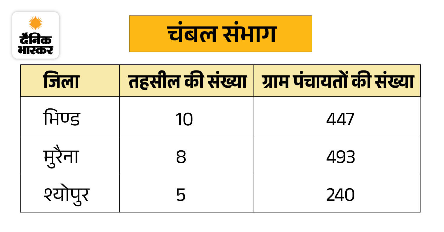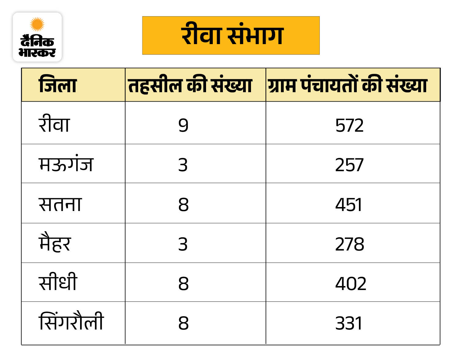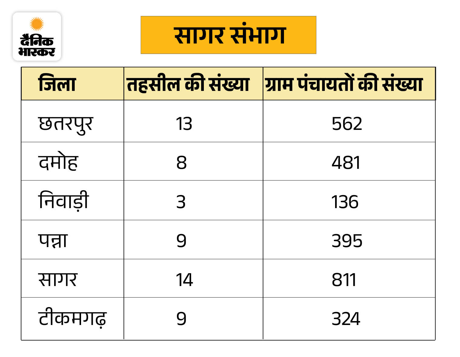 | जिला | तहसील की संख्या | ग्राम पंचायतों की संख्या |