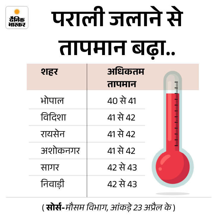 पराली जलाने से दिन का तापमान औसतन 1 से 2 डिग्री सेल्सियस बढ़ा है। तापमान मापने के लिए मौसम केंद्र, एयरपोर्ट और नवी बाग में सिस्टम लगे हैं, जिससे रोज औसत तापमान दर्ज होता है।