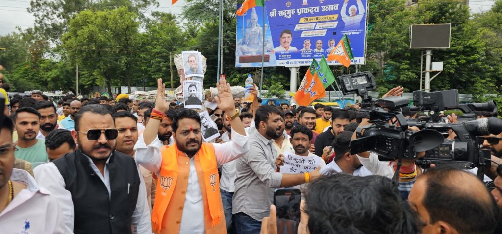 भारतीय जनता युवा मोर्चा द्वारा आज मध्यप्रदेश के सभी जिलों में कांग्रेस नेता राहुल गांधी द्वारा हिंदू समाज को लेकर संसद में दिए गए बयान को लेकर विरोध प्रदर्शन कर पुतला जलाया गया। भाजपा युवा मोर्चा ने कहा कि राहुल गांधी अपने बयान को लेकर हिंदू समाज से तुरंत माफी मांगें।