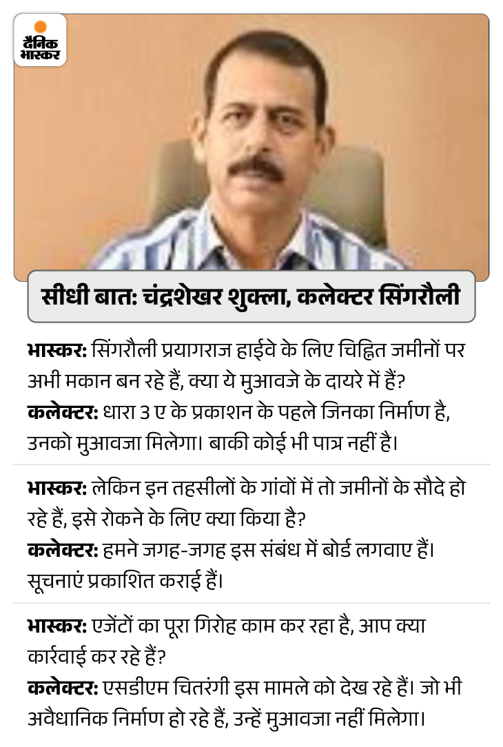 सिंगरौली-प्रयागराज नेशनल हाईवे का सर्वे हो चुका है। मप्र में 70 किमी के हाईवे की जद में चितरंगी और दुधमनिया तहसील के 33 गांवों की जमीन आ रही है। अधिग्रहण की अधिसूचना मार्च में जारी हो गई थी। यानी, जमीन की खरीद-फरोख्त और नामांतरण नहीं हो सकता। फिर भी दोनों तहसीलों के गावों में पिछले 1 महीने में 2000 से अधिक ‘मुआवजा घर’ खड़े हो गए हैं।