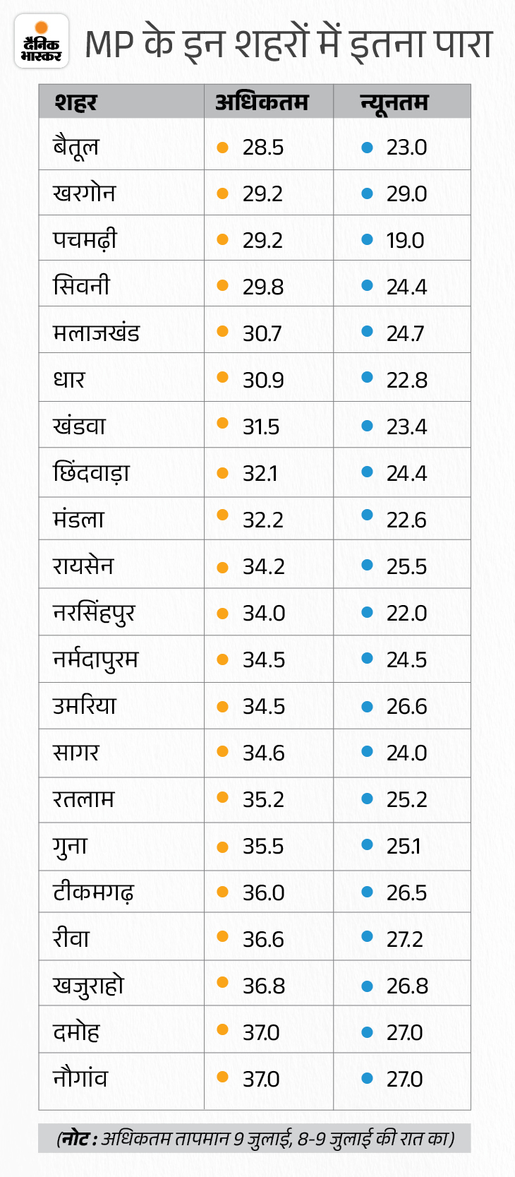 एमपी में मंगलवार को इतना रहा टेम्प्रेचर