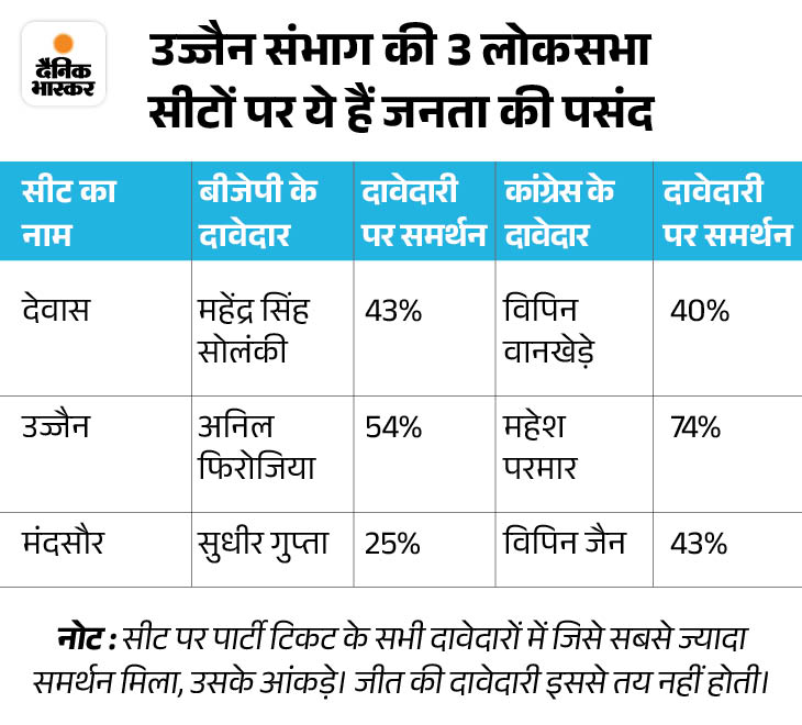 दैनिक भास्कर उम्मीदवार सर्वे-2024 में अब तक आप ये देख चुके हैं कि मध्य प्रदेश की 29 सीटों पर जनता ने भाजपा और कांग्रेस से प्रत्याशी के तौर पर किन चेहरों को सबसे ज्यादा पसंद किया।