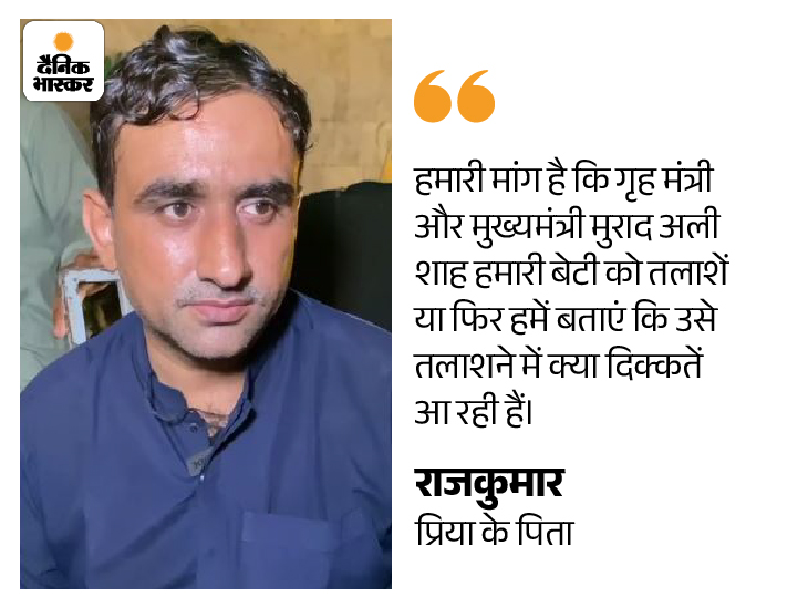‘पहले हमने आस-पास तलाशा। इसके बाद लोकल लोगों के साथ जाकर पुलिस स्टेशन में किडनैपिंग की रिपोर्ट दर्ज करवाई। दो महीने पहले ही सिंध के गृह मंत्री जिआउल हसन लंजर ने विधानसभा में दावा कर हमें उम्मीद दी थी कि प्रिया जिंदा है और सुरक्षित है। जल्द ही उसे परिवार को सौंप दिया जाएगा। इस बयान को दिए अब दो महीने हो चुके हैं।’