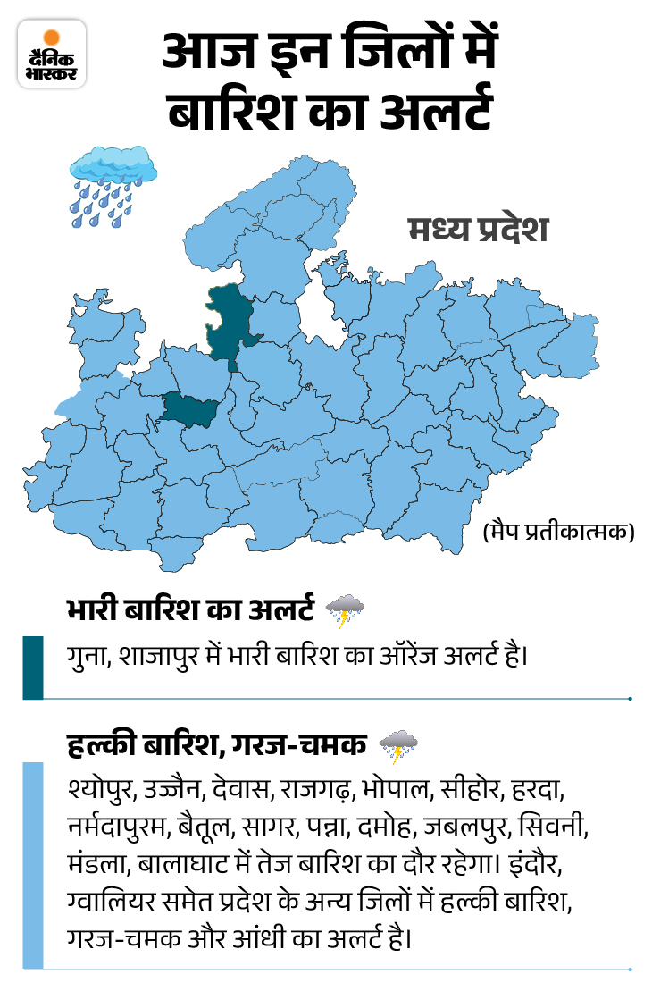मध्यप्रदेश में गुरुवार को 18 जिलों में तेज बारिश का अलर्ट है। भोपाल में सुबह रिमझिम बारिश हुई, जो दोपहर में तेज हो गई। पन्ना में रात से बारिश जारी है, यहां के एनडीआरएफ और होमगार्ड कार्यालय में पानी भर गया है।