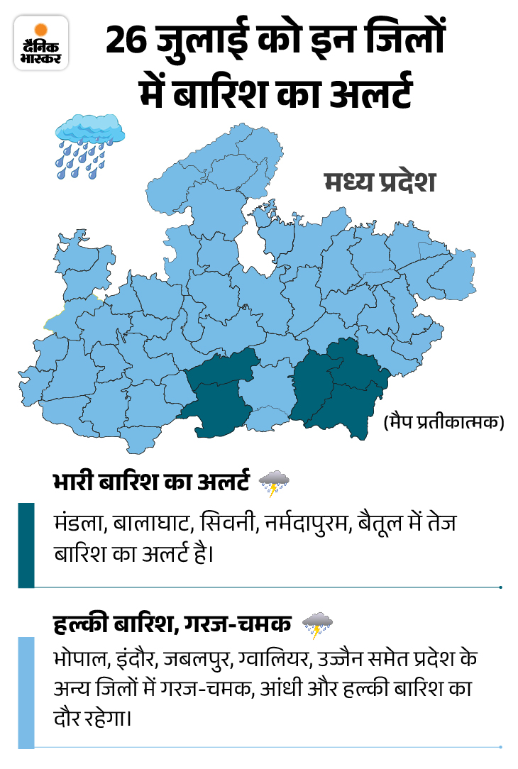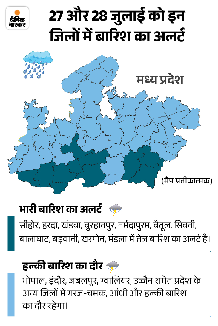 मौसम वैज्ञानिक डॉ. वेदप्रकाश सिंह ने बताया कि 28 जुलाई से फिर स्ट्रॉन्ग सिस्टम की एक्टिविटी हो सकती है। 29 और 30 जुलाई को उत्तरी हिस्से में तेज बारिश होने का अनुमान है।