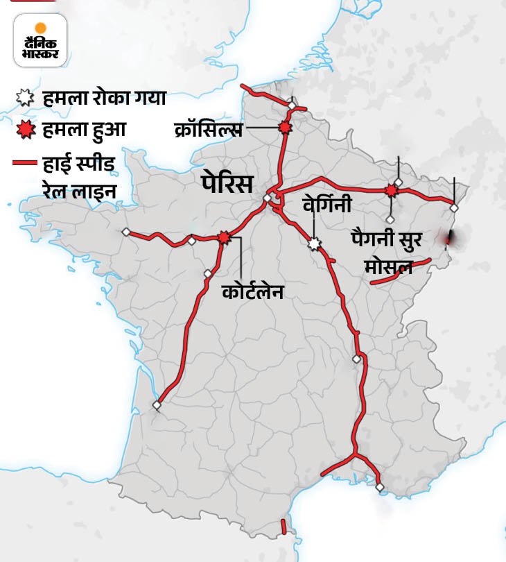 मैप में देखिए पेरिस जाने वाली कौन-कौन सी रेलवे लाइनों पर हमला हुआ है…