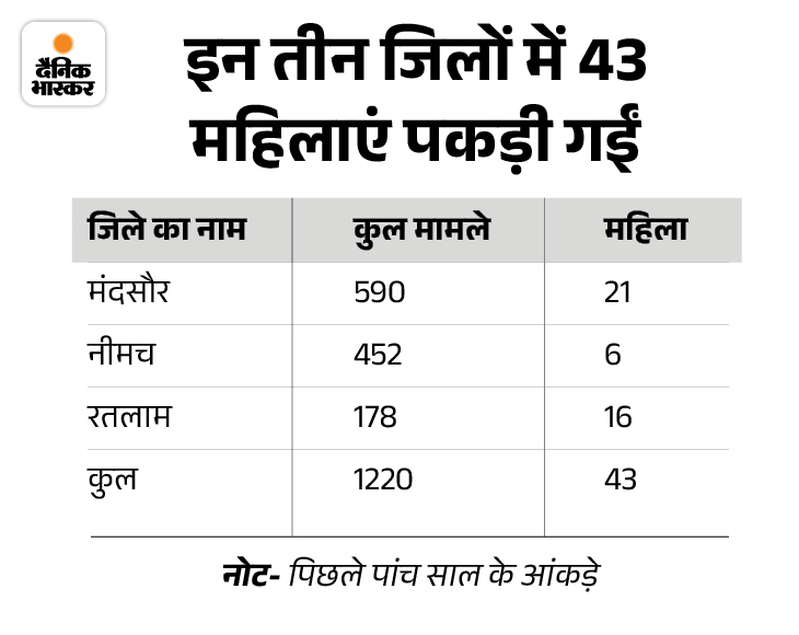 सेंट्रल नारकोटिक्स ब्यूरो ने पिछले 5 साल में 3 जिले रतलाम, नीमच और मंदसौर में ही 43 महिलाओं को पकड़ा है। नेशनल क्राइम रिकॉर्ड ब्यूरो की 2022 की रिपोर्ट के मुताबिक इंदौर ड्रग्स के कारोबार का सेंटर है। पढ़िए ड्रग्स के कारोबार में महिलाओं की एंट्री कैसे हो रही है।