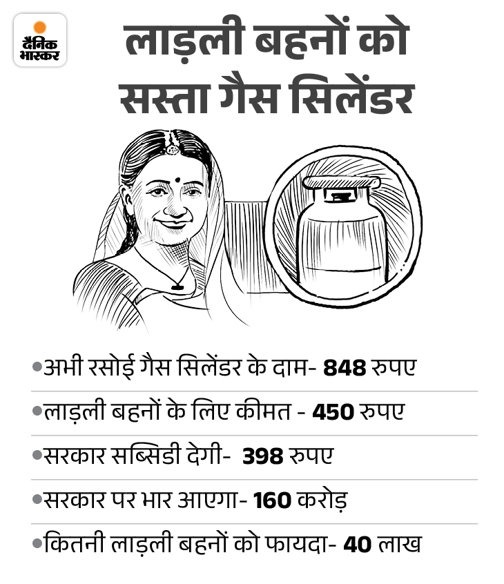 40 लाख लाड़ली बहनों को 450 रुपए में गैस सिलेंडर:
